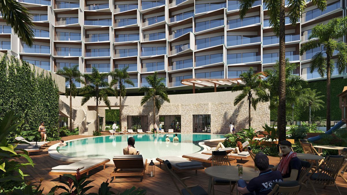 BEACH CLUB: El Club de playa con capacidad para 300 personas completamente equipado, será el spot favorito para estar con la familia disfrutando de sus dos albercas, ludoteca y los más de 120 camastros y exclusivos bungalows. Además, podrás aprovechar su restaurante y bares con tus invitados, o disfrutar al aire libre a la orilla del mar.