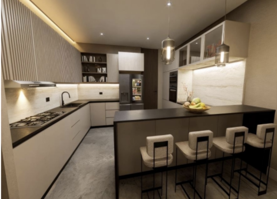 Acabados de lujo como pisos de mármol Carrara, duelas importadas etc
