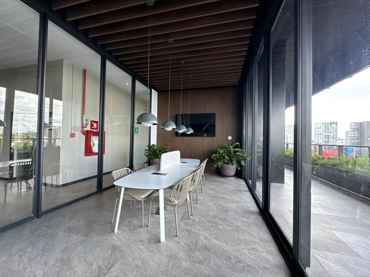 Dentro del conjunto residencial, podrás disfrutar de amenidades como gimnasio, alberca, cancha de padel, área de juegos infantiles y salón de usos múltiples. También cuenta con espacio de co-working, ideal para trabajar desde casa. La seguridad privada las 24 horas brinda tranquilidad a los residentes. Además, se aceptan mascotas.