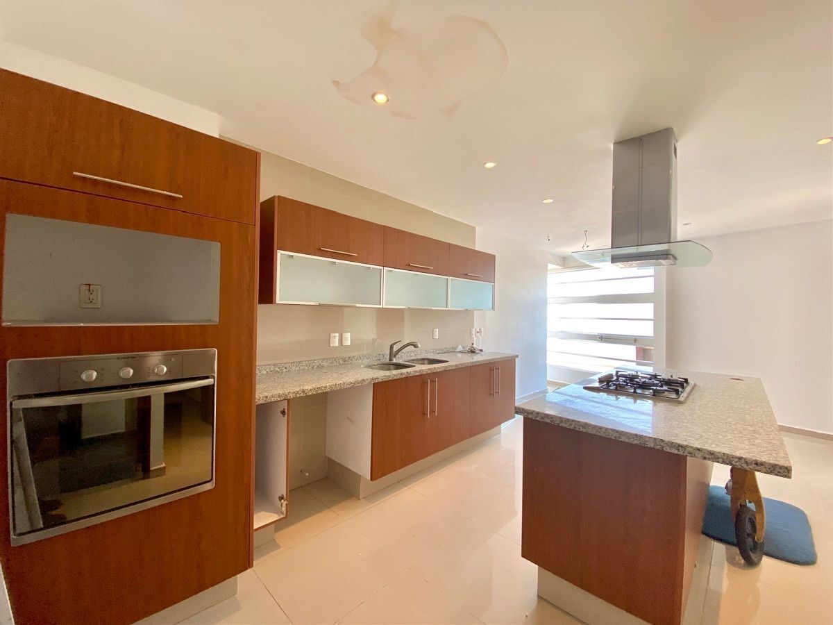 *Cocina Equipada: Moderna y funcional, con isla central y barra desayunador, cubierta de granito, refrigerador, lavavajillas, torre de horno y microondas, amplia alacena y múltiples espacios de guardado.