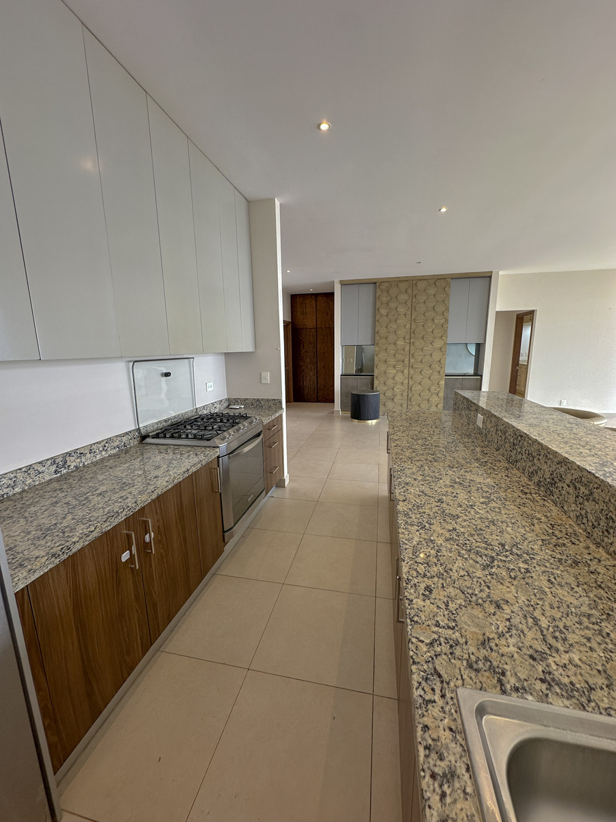 Aires acondicionados tipo minisplit en todo el departamento. (Son 4 equipos: 1 en área social, y las 3 recámaras). Persianas de sala y comedor automáticas. Persianas en recámaras blackout. Calentador de agua. Estufa con horno de gas. Refrigerador de dos puertas.