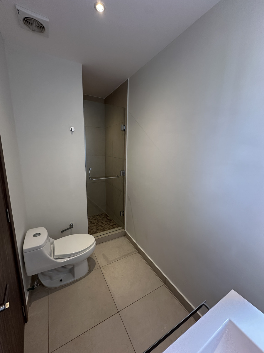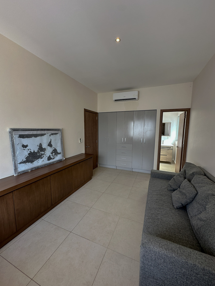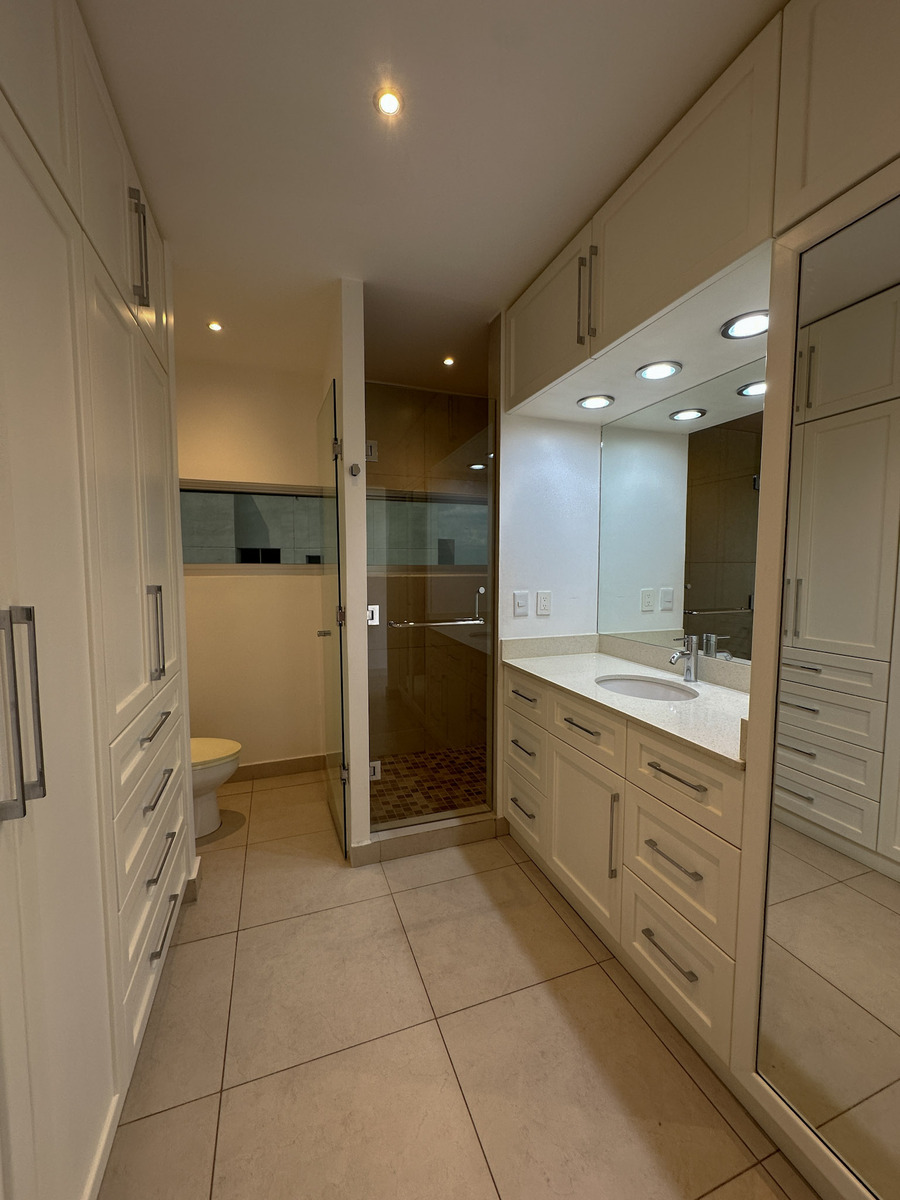 Recámara 1 con clóset de pared y baño completo. Esta recámara tiene un mueble y era usada como oficina/estudio.