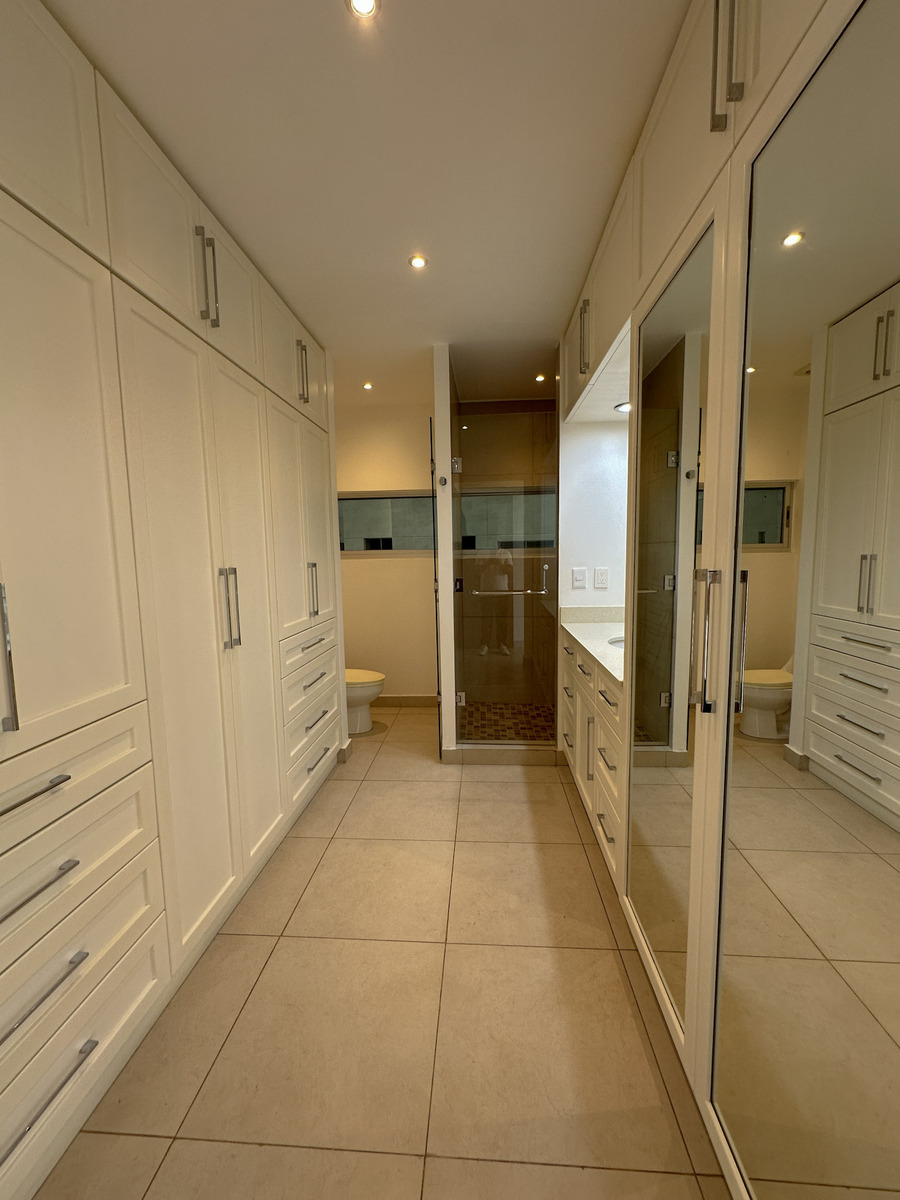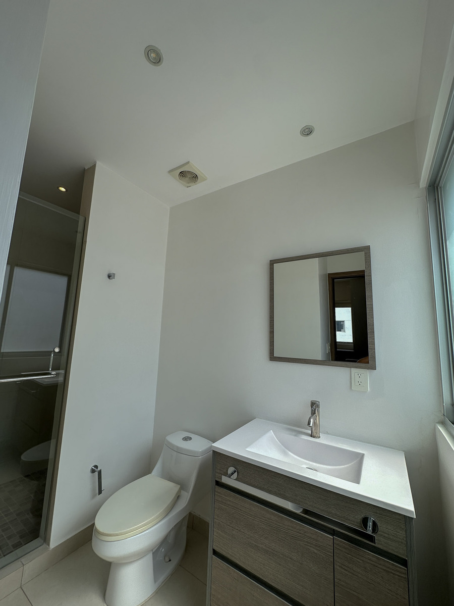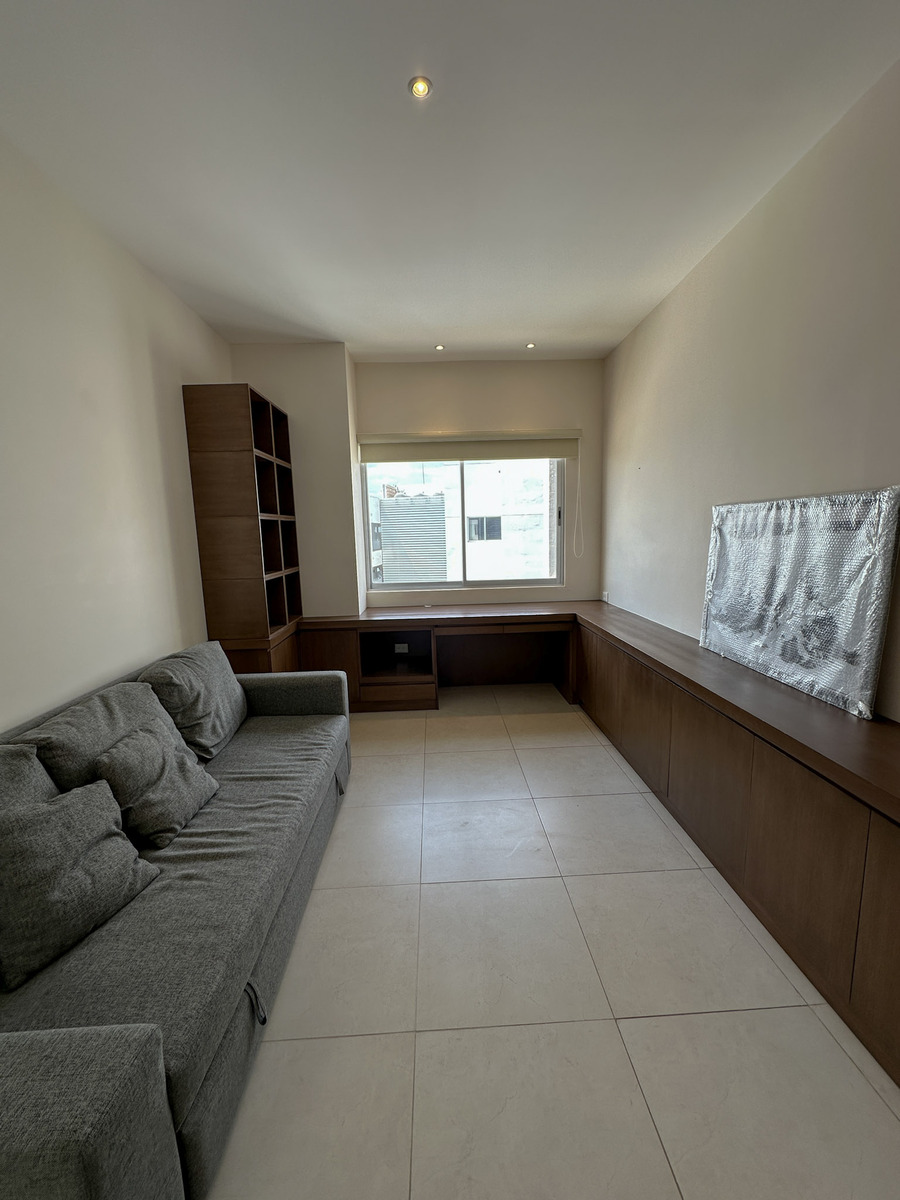 Recámara 1 con clóset de pared y baño completo. Esta recámara tiene un mueble y era usada como oficina/estudio.