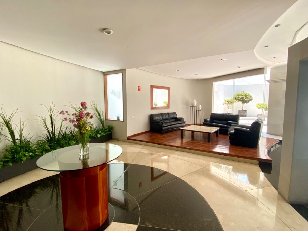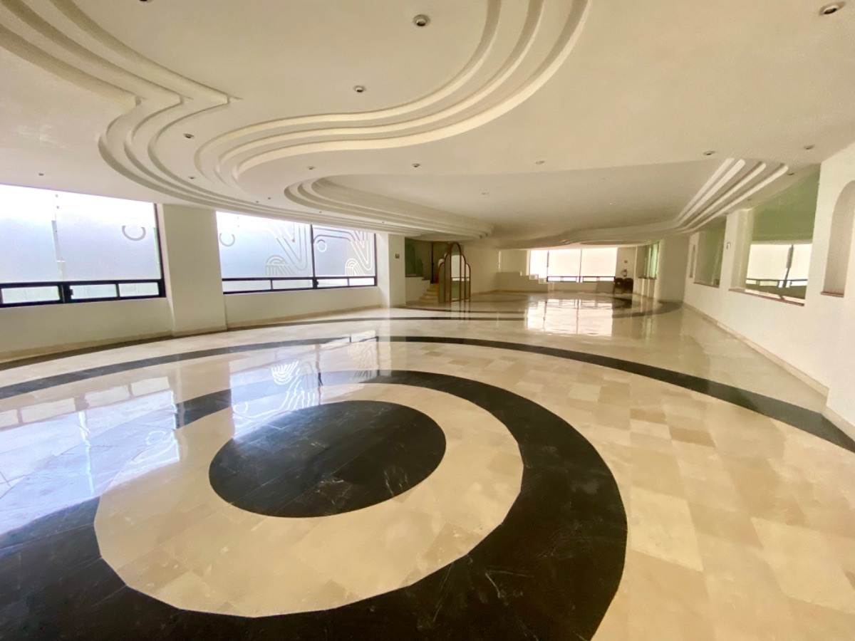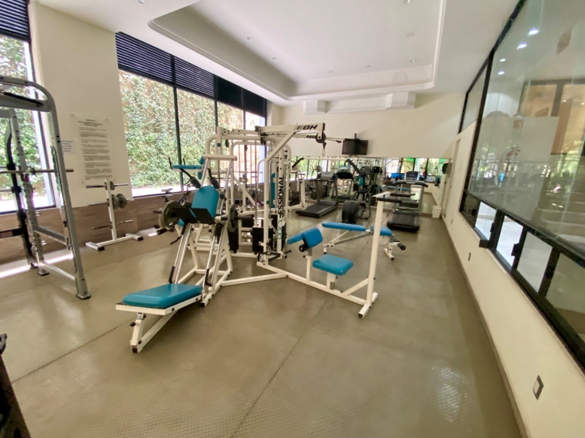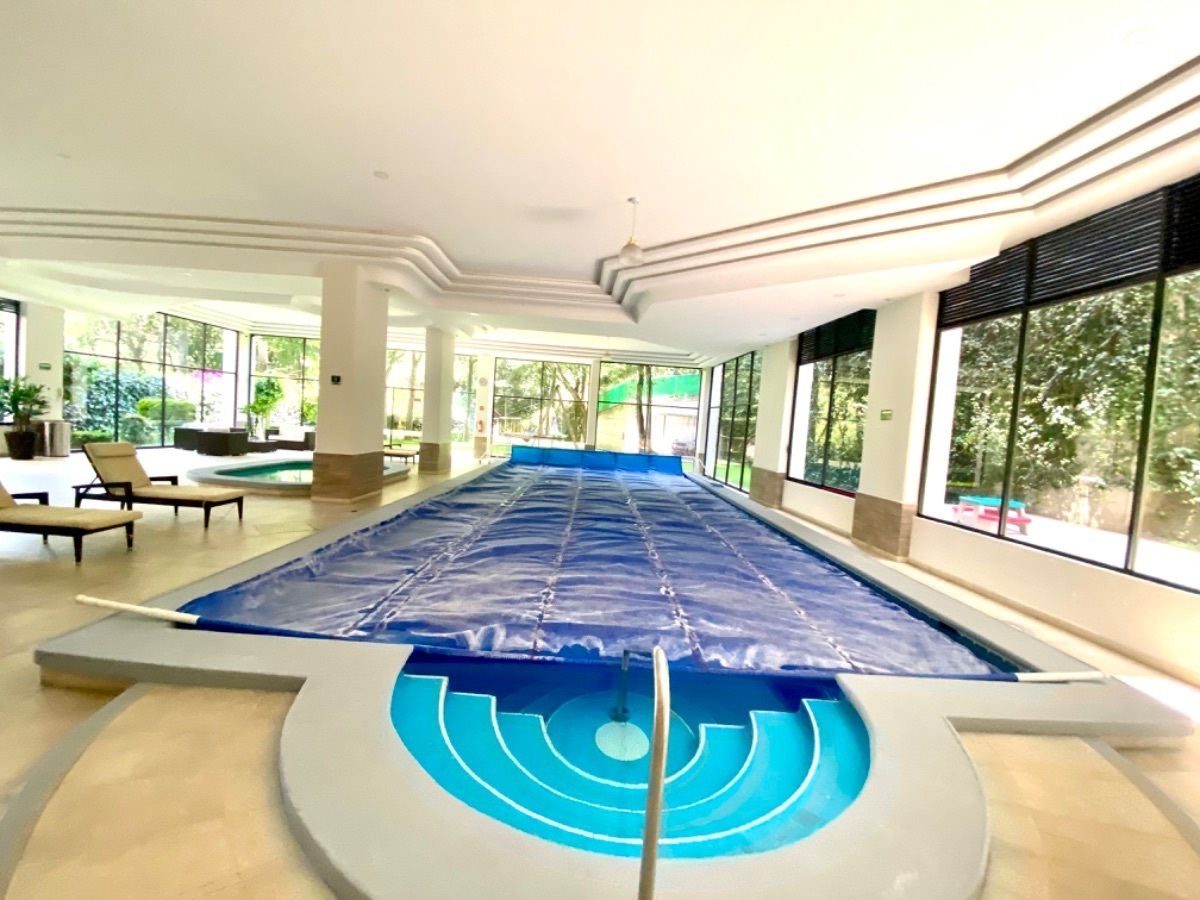 El edificio cuenta con alberca, jardín, area de asador, gimnasio, squash, salon de fiestas y seguridad 24/7.