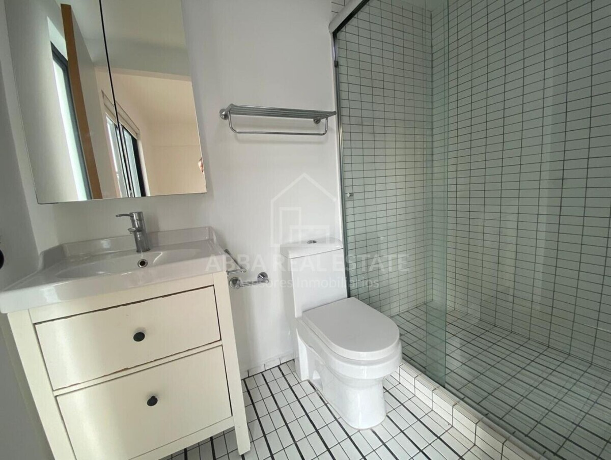 El departamento cuenta con una cocina abierta moderna que se conecta con un balcón lateral, ideal para disfrutar de una vista relajante mientras cocinas. El área de lavado es práctica y bien ubicada.