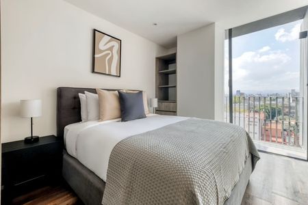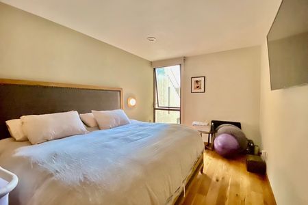 A unos pasos de la Plaza Popocatépetl, la calle una des las más bonitas de la colonia. 2 recámaras, 2.5 baños, sala, comedor, balcón, cocina, espacio para sala de TV/estudio u oficina, área de lavado, 2 cajones de estacionamiento y área para bicicletas, piso 10, 2 elevadores.