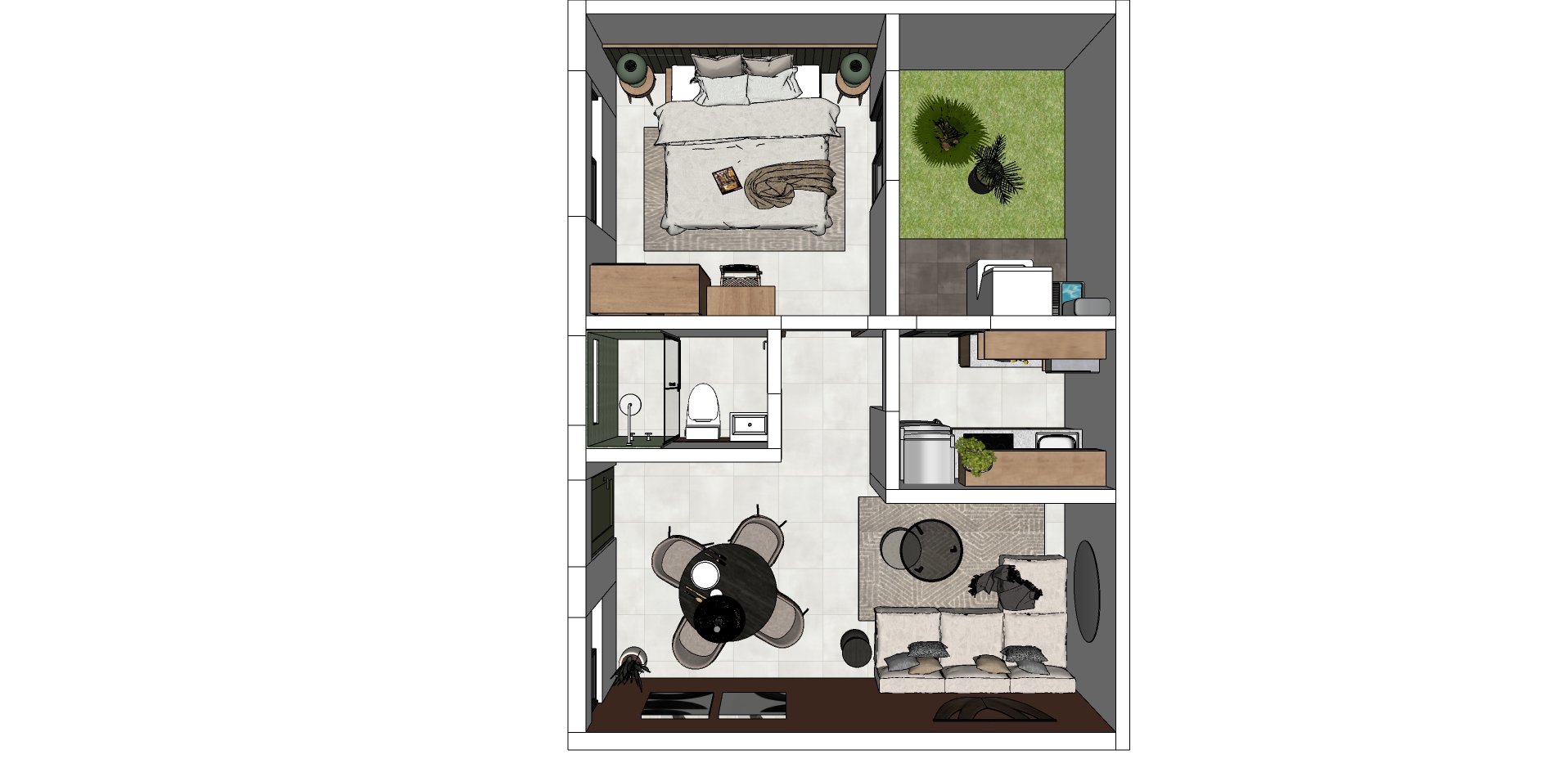 Pátio e jardim privado