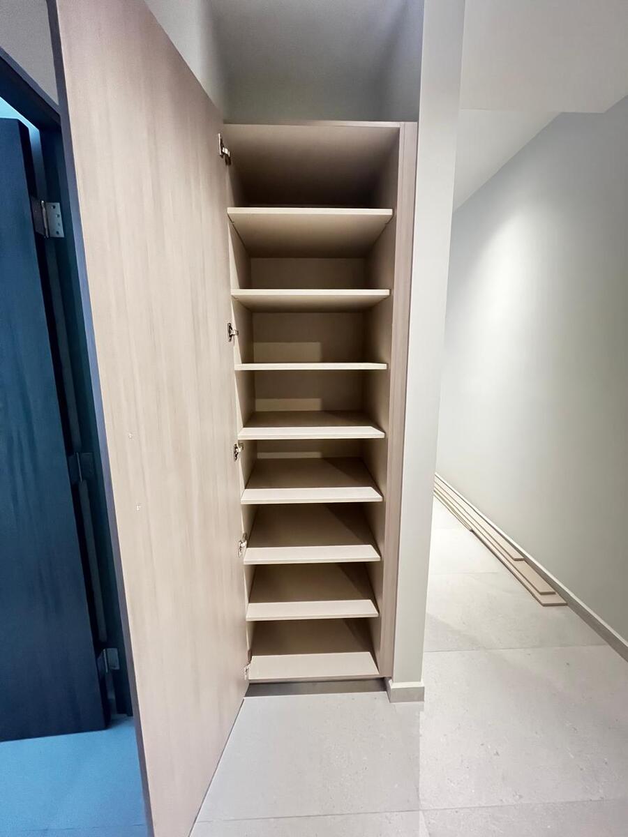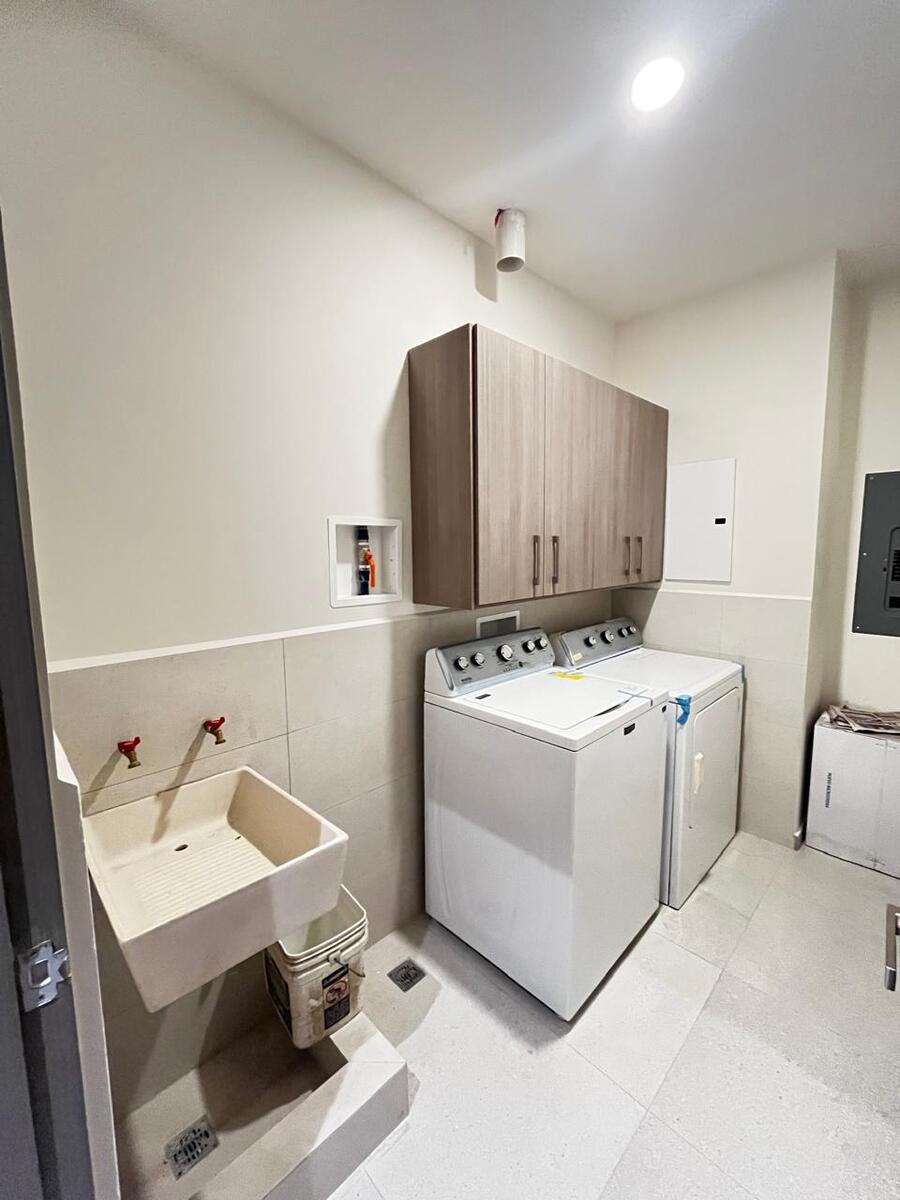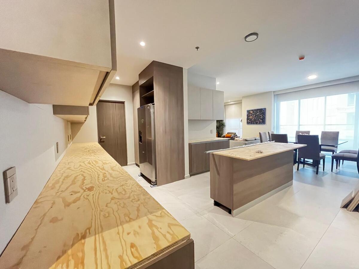 Distribución: Recibidor, baño de visitas, cocina equipada con estufa, horno, campana y refrigerador, lavandería, sala comedor con salida a balcón con vista panorámica, 2 Recámaras, la principal con baño y walk-in closet y salida a balcón, cuarto de servicio, 2 cajones de estacionamiento.