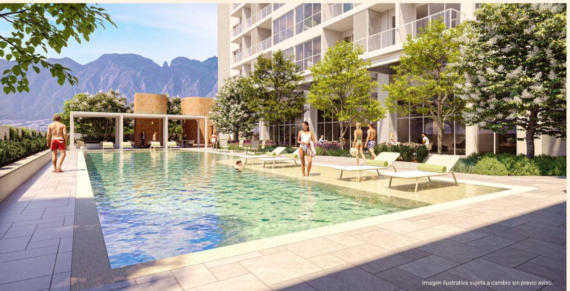 COMODIDADES: Piscina, academia, churrasqueiras, sala de jogos para crianças, sala de jogos, etc.Hermoso departamento en renta en desarrollo residencial de primer nivel ubicado en Valle Poniente, frente al Consulado Americano, con amenidades de un club social, con vistas hacia La Huasteca y la Sierra Madre.