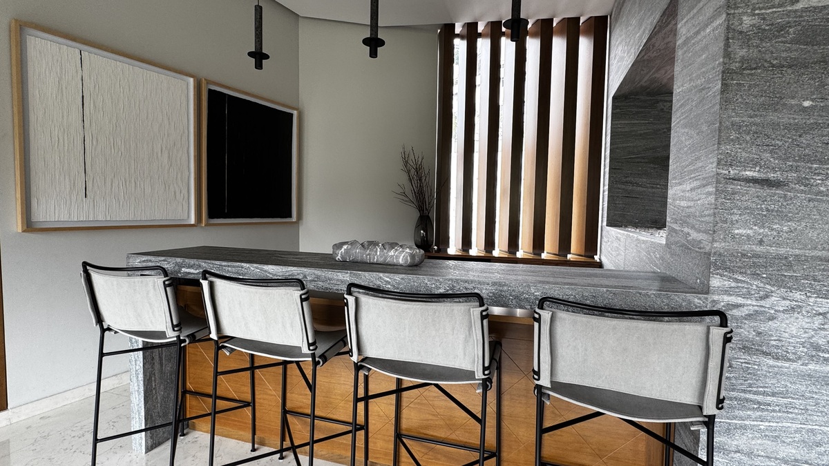 Amplia sala y comedor con acceso a la terraza y área de bar.