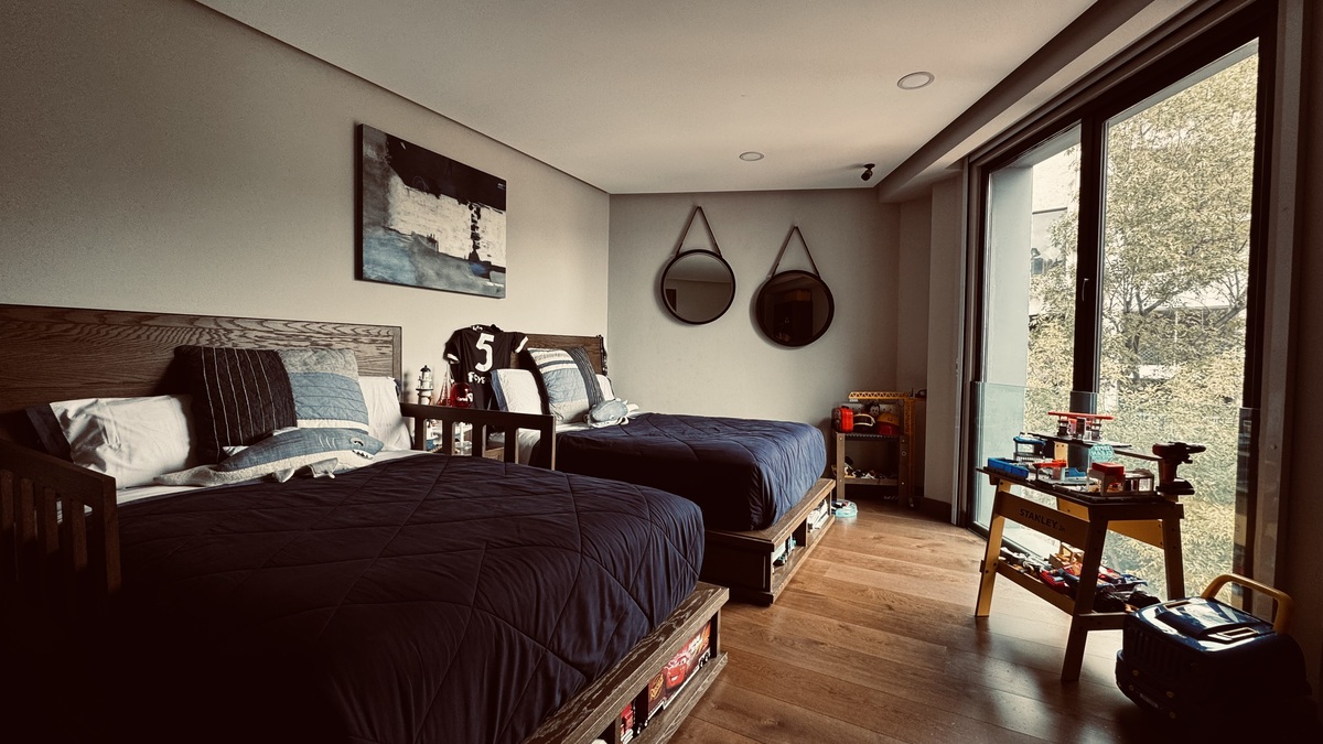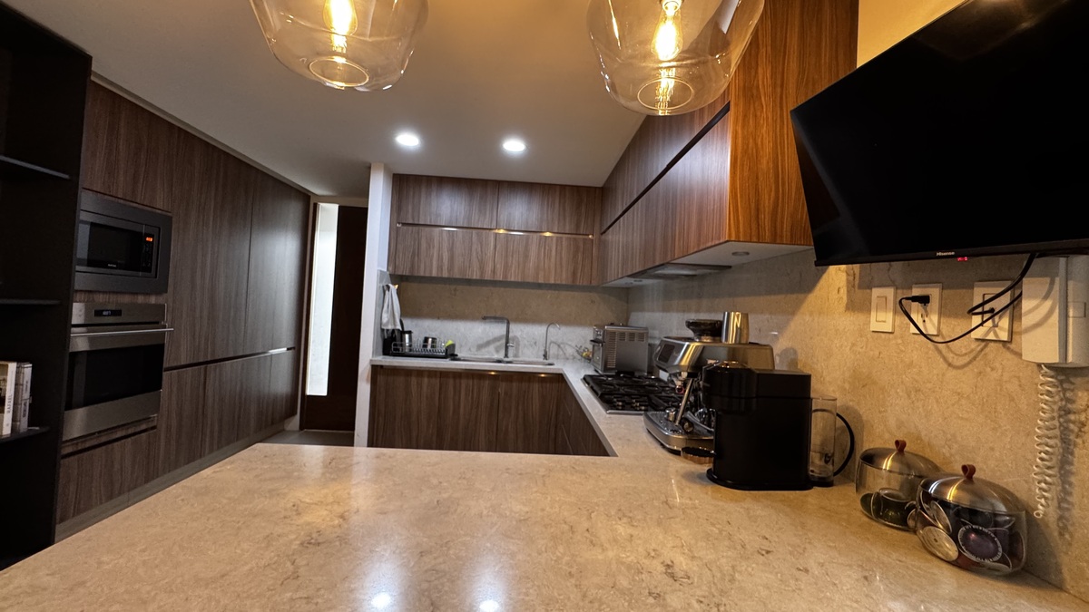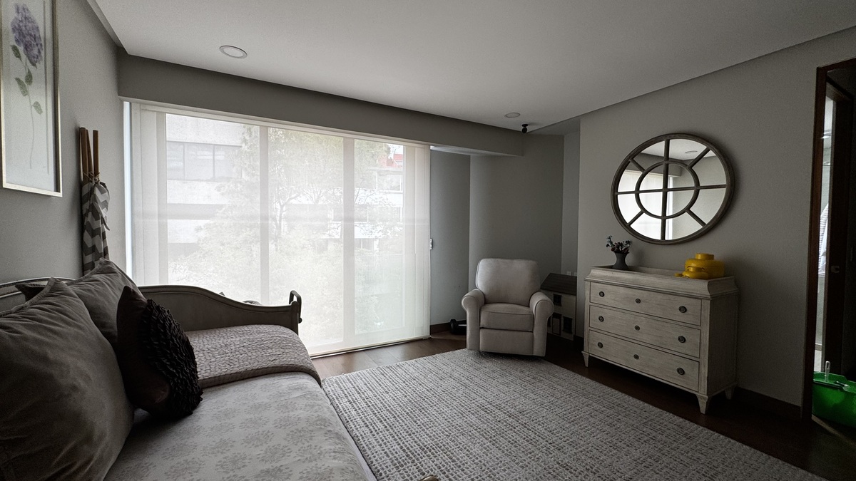 El edificio cuenta con solo 8 departamentos, área de chóferes, gimnasio, ludoteca, salón de usos múltiples con jardín y seguridad 24 horas.