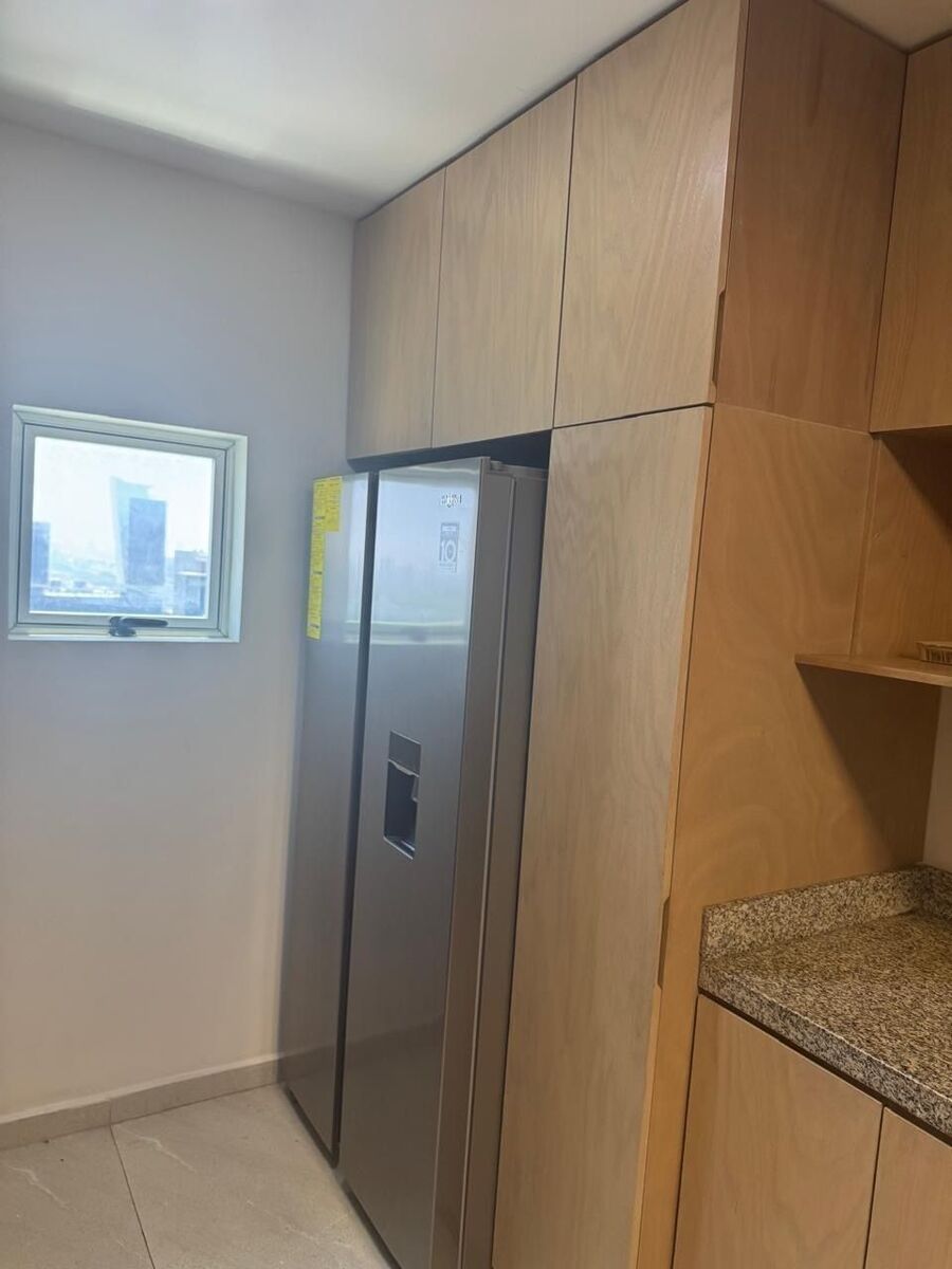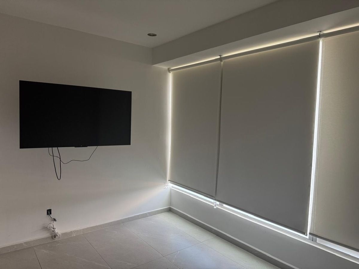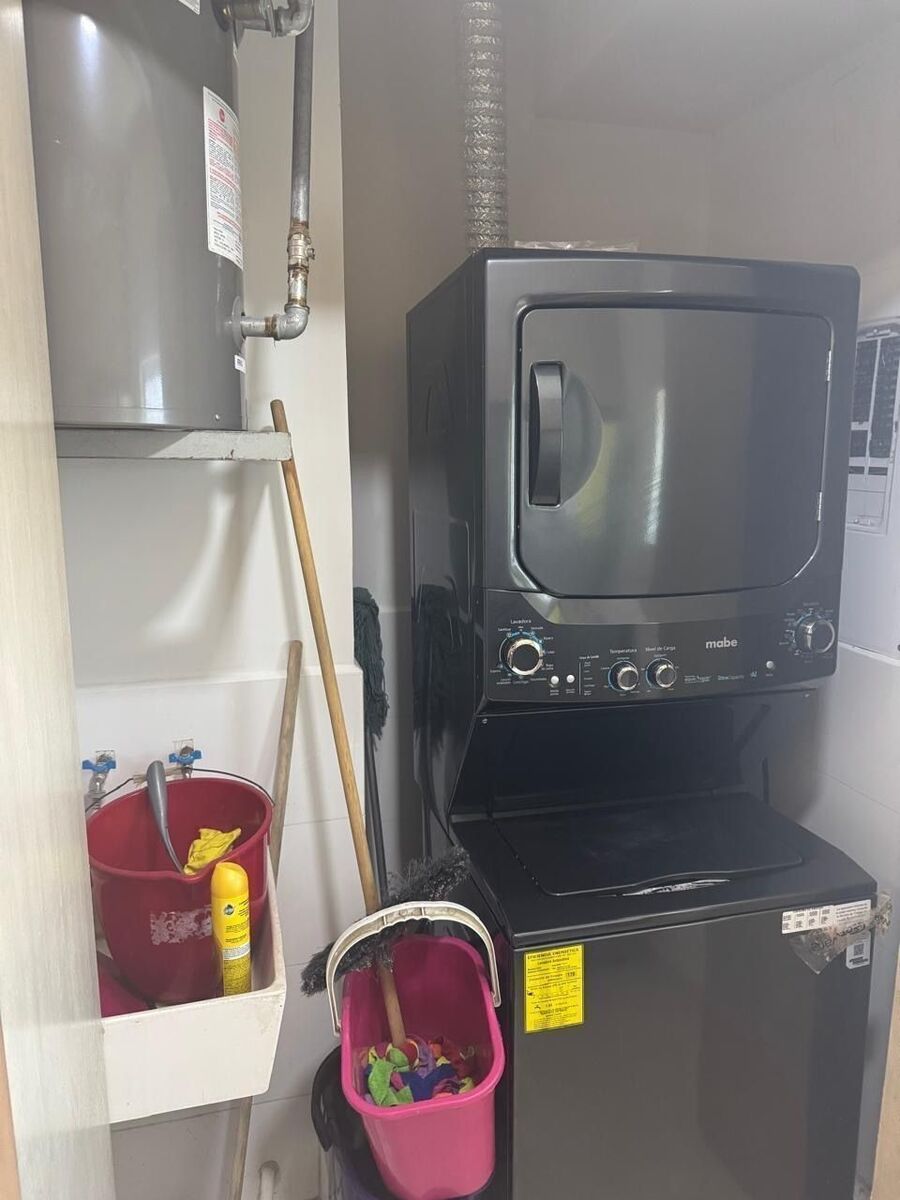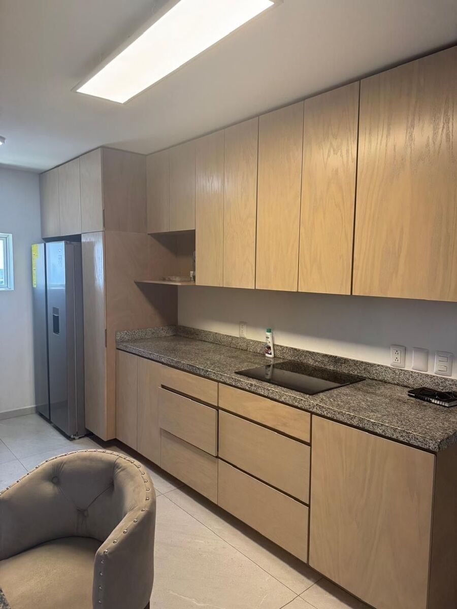 2 recámaras, 2 baños completos, la principal con vestidor, secundaria con closet, balcón, persianas, 3 mini splits inverter, centro de lavado, cocina integral con refrigerador, microondas, horno.