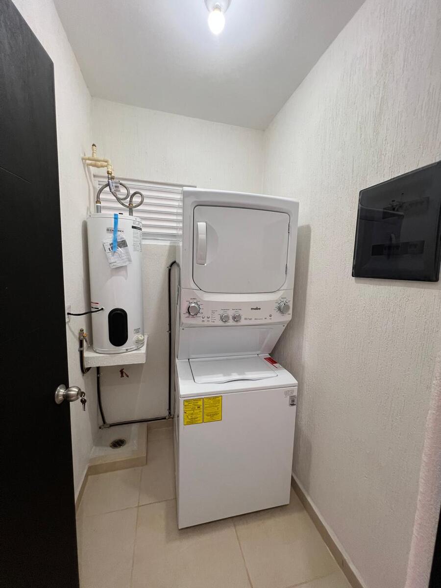 •Area de lavado con centro de lavado y calentador eléctrico.