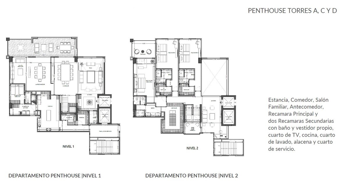 Elevador directo al departamento (menos al Pent Garden nivel 1 torres A, C y D)