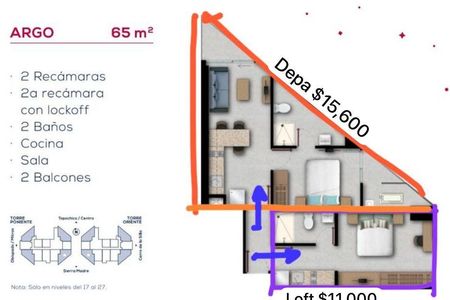 Sala,comedor, cocina, 2 baños completos ( recámara principal con clóset vestidor y baño, recámara secundaria comparte baño con el de área social)