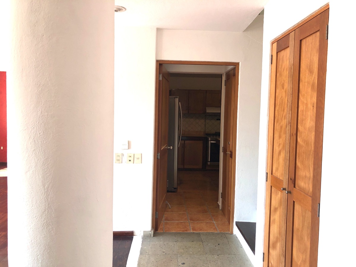 EL DEPARTAMENTO CUENTA CON PISOS DE MADERA DE EXCELENTE CALIDAD Y CARPINTERÍA RECIENTEMENTE RENOVADA. EN LA PLANTA BAJA, SE ENCUENTRA UNA AMPLIA SALA Y COMEDOR, UN MEDIO BAÑO PARA VISITAS, UNA COCINA MODERNA, LAVANDERÍA, Y UN GRAN CUARTO DE SERVICIO CON BAÑO COMPLETO. EN LA PLANTA ALTA, SE ENCUENTRAN TRES CÓMODAS RECÁMARAS, UN FAMILY ROOM Y 2.5 BAÑOS.