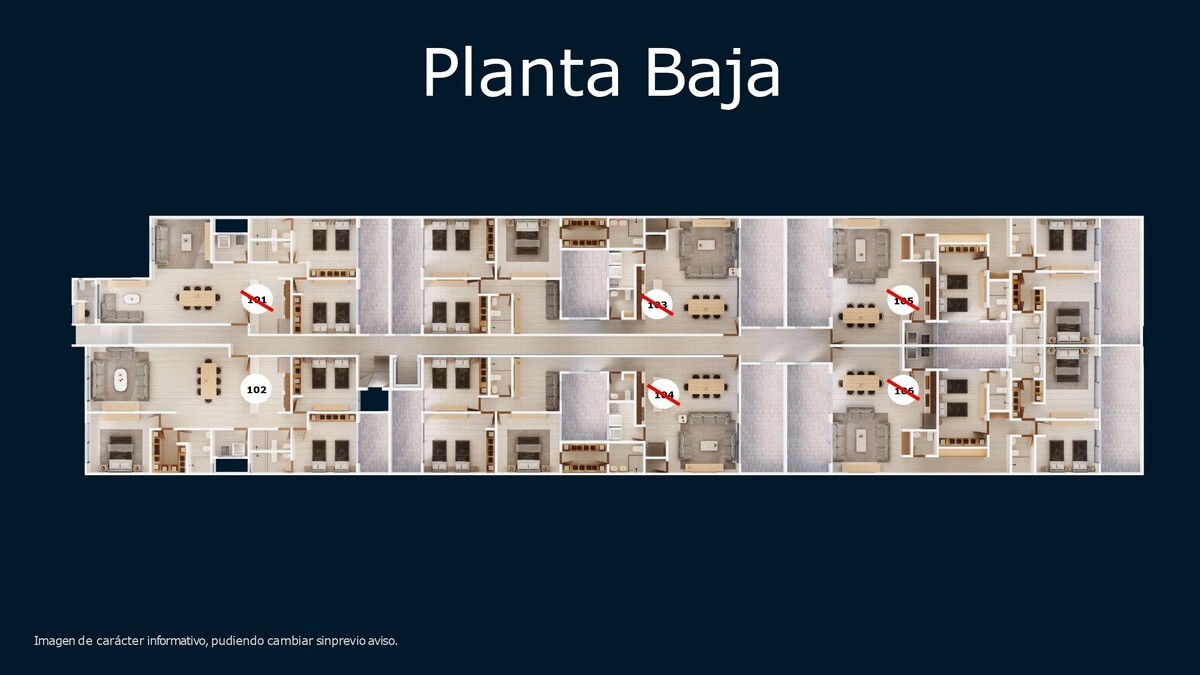 Cada planta cuenta con 6 departamentos algunos con terraza y/o balcón