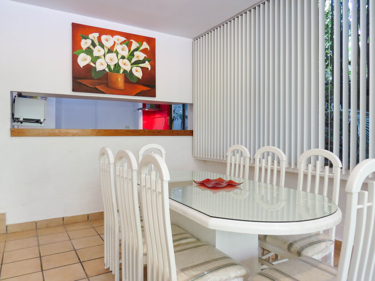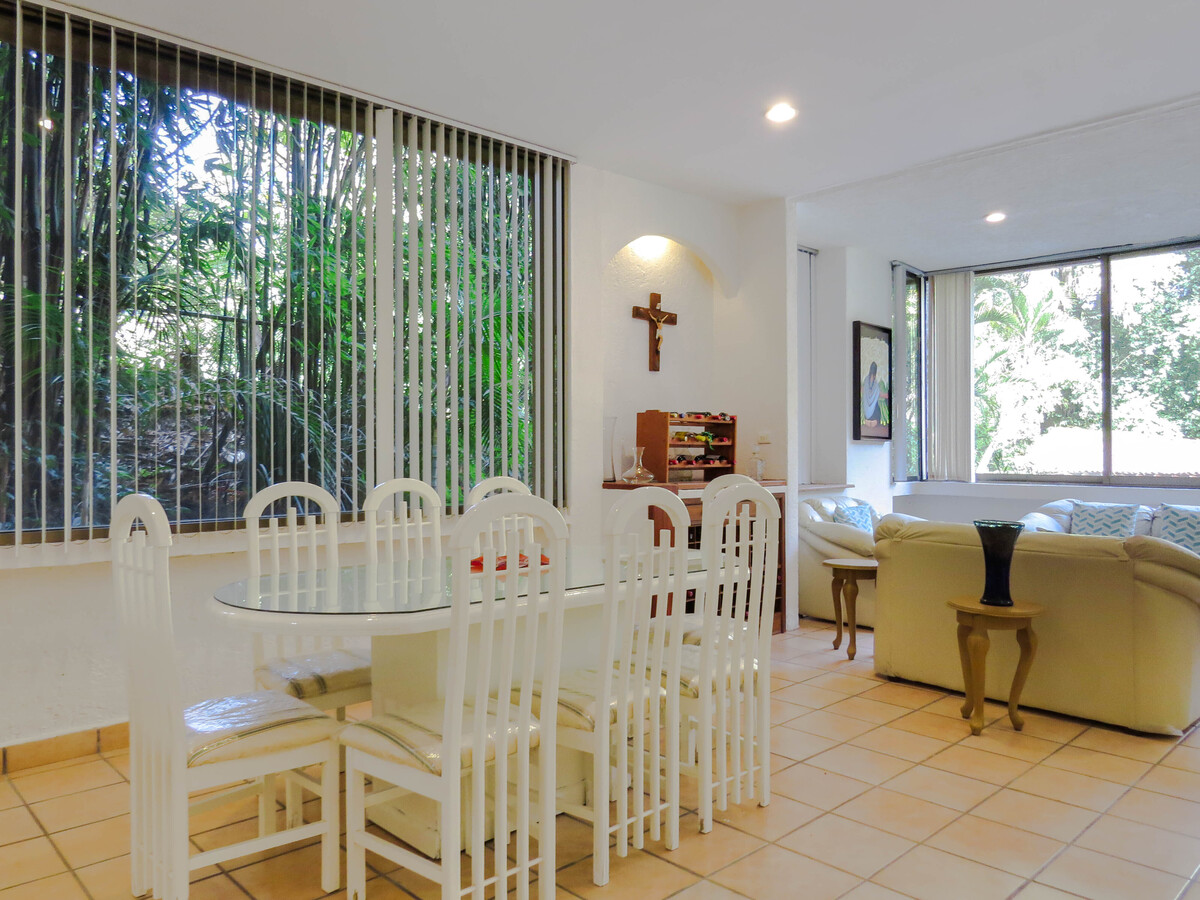 SITUADO EN PLANTA BAJA, EL DEPARTAMENTO OFRECE 1 RECÁMARA PRINCIPAL CON BAÑO COMPLETO Y VESTIDOR, 2 RECÁMARAS ADICIONALES CON BAÑO COMPARTIDO, SALA, COMEDOR Y COCINA. CUENTA ADEMÁS CON UN CUARTO DE SERVICIO CON BAÑO COMPLETO, CON OPCIÓN A AMPLIAR A UNA CUARTA RECÁMARA. TAMBIÉN DISPONE DE ÁREA DE LAVADO, JARDÍN, ALBERCA CLIMATIZADA CON JACUZZI, BAÑOS, PALAPA CON COCINETA Y ASADOR, ADEMÁS DE DOS LUGARES DE ESTACIONAMIENTO TECHADOS.