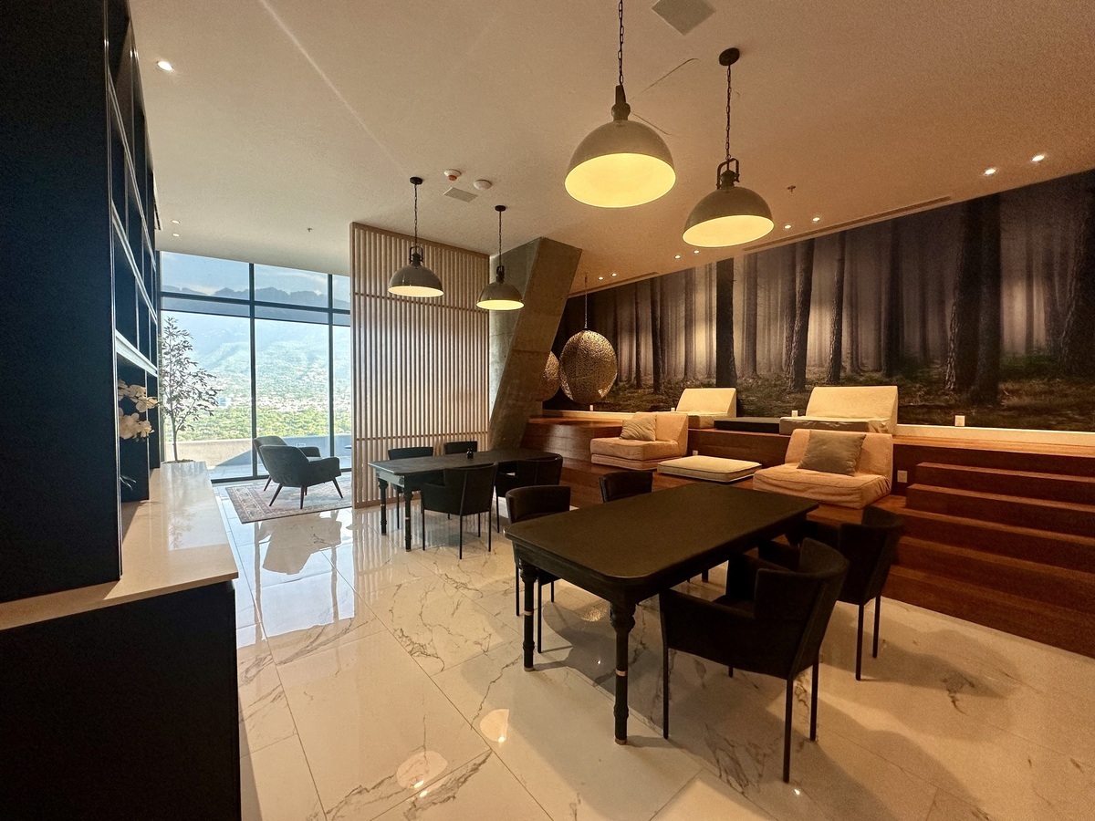 AMENIDADES: lobby, sky pool, gym, video game room, children’s room, out of the box, sports room, lounge room, object library, pet friendly, events room, community garden, multipurpose court, children’s playground, Zen garden, fire pits, grill