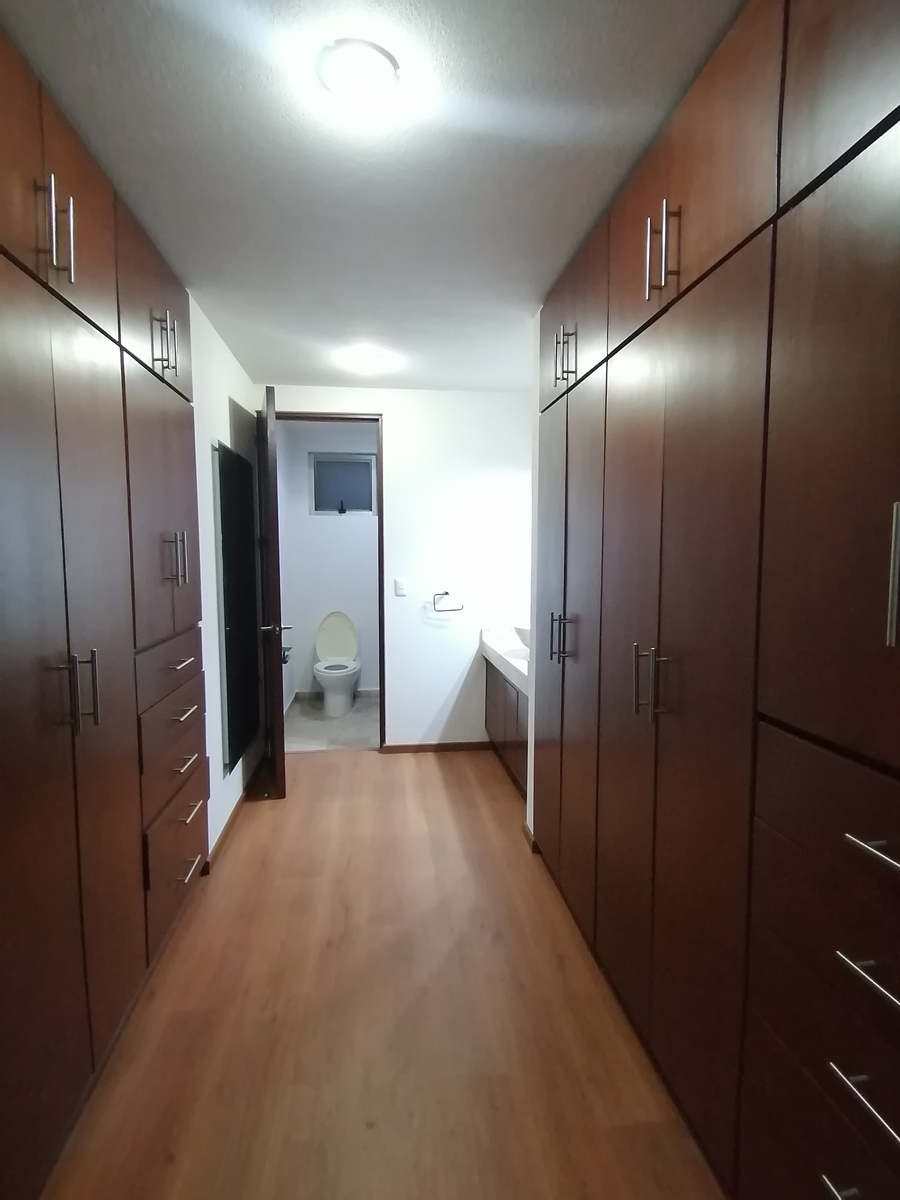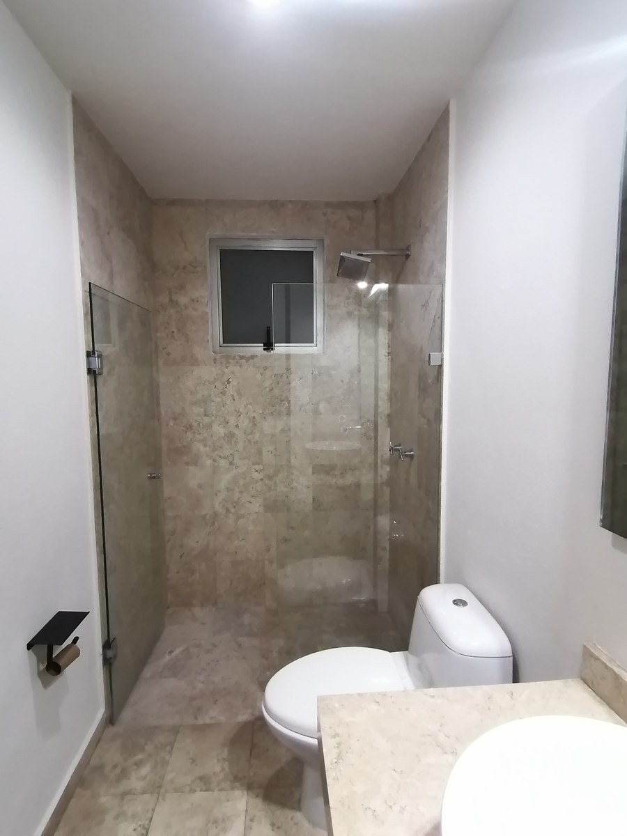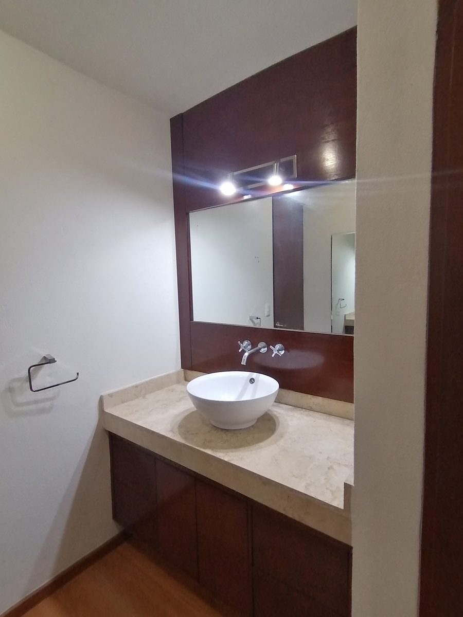 5 ° Piso, área de sala, comedor, cocina integral, 3 recámaras c/u con closet, 2 baños completos, cochera 2 autos. Patio de servicio, jardinera. Acabados de buen gusto, Carpintería en madera, piso en interiores en porcelanato, calentador solar, cuenta con cisterna de uso común para 4 departamentos. Superficie de construcción 96.34 m2