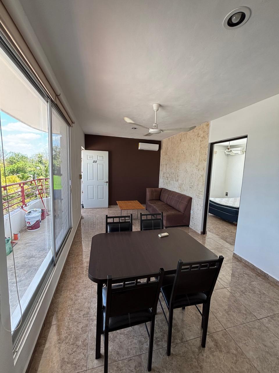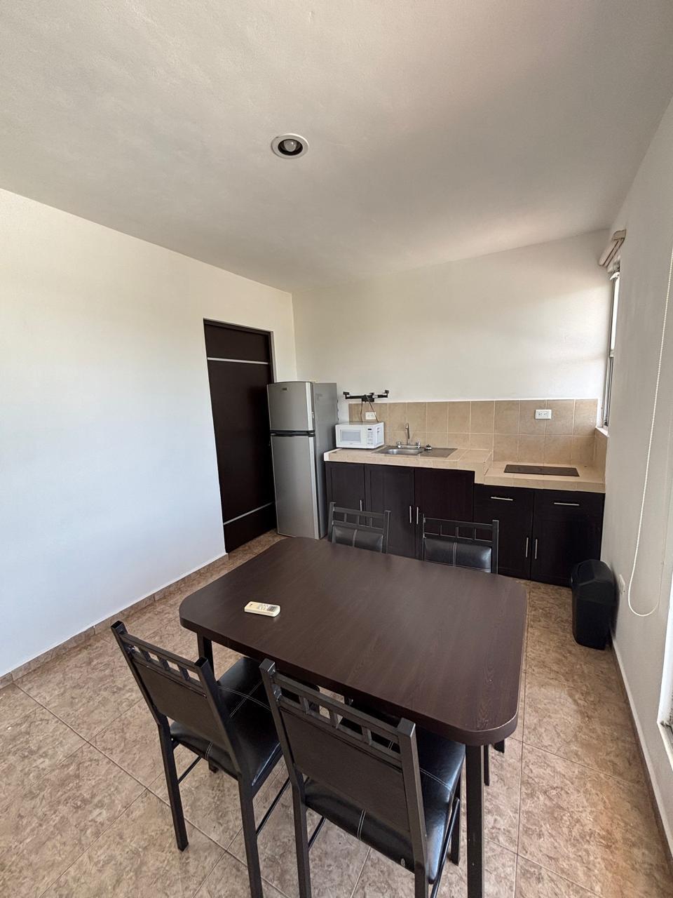 Cuenta con estacionamiento privado, sala y comedor corridos, área de lavado con tendedero, una recámara con baño propio con su closet, aire acondicionado, persianas y ventilador.