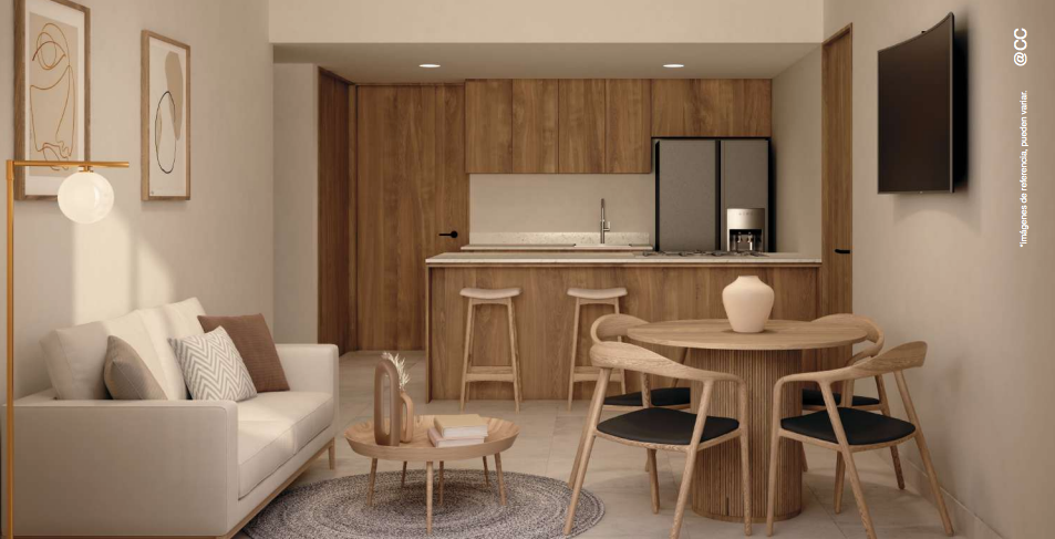 Los departamentos están diseñados con un enfoque contemporáneo, moderno y minimalista, destacando materiales naturales como la madera, para brindar calidez y sofisticación en cada espacio.