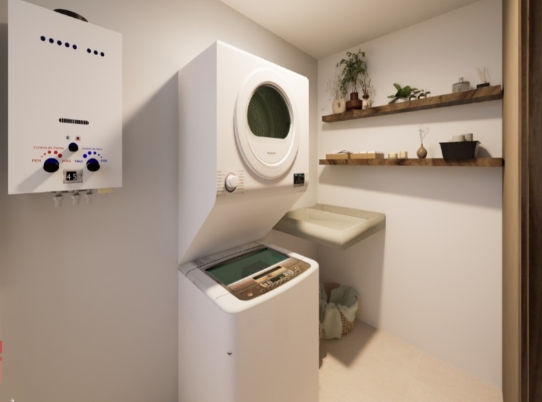 Departamentos de 2 recámaras, 2 baños completos, cocina integral con barra, sala, comedor, área de lavado. Dependiendo del departamento, puede tener 1 o 2 cajones de estacionamiento.