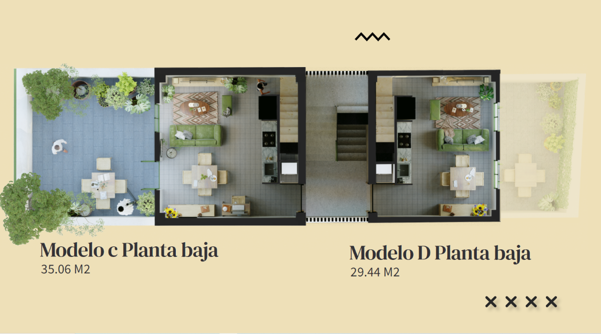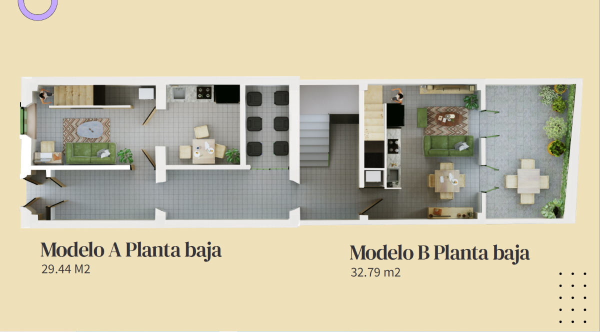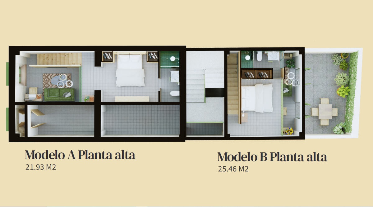 Seis diferentes TIPOS DE MODELOS de doble altura , superficie desde 51.00mts hasta 62.9mts