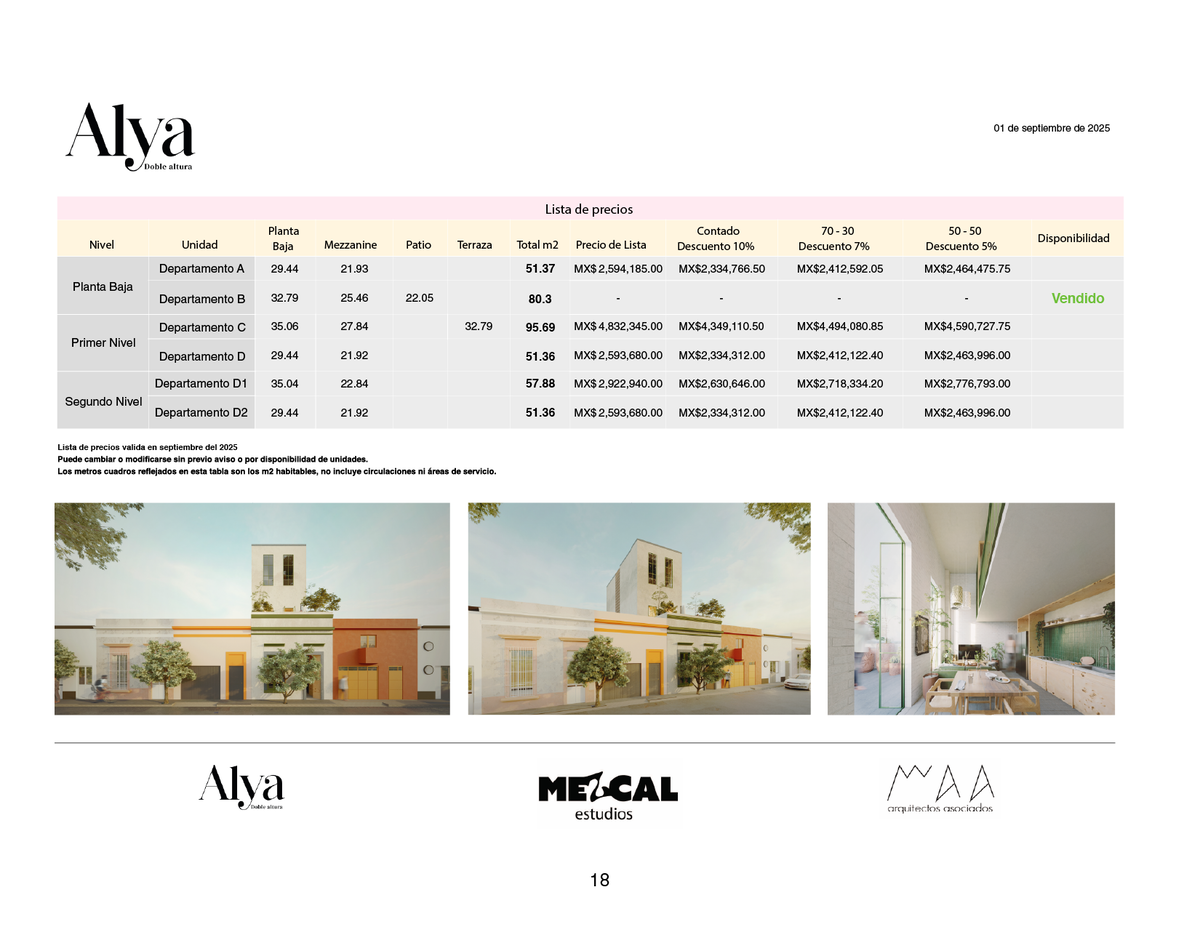 Seis diferentes TIPOS DE MODELOS DE DOBRA ALTURA, área de superfície de 51,00mts a 62,9mts