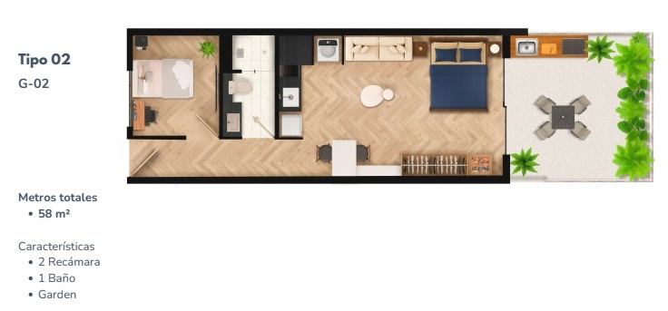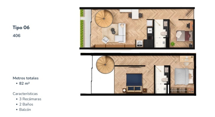Opciones de 1 a 3 recámaras con distribución inteligente