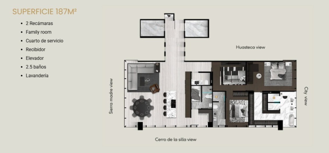 Un concepto de lujo inigualable en Distrito Centrito Valle. Departamentos exclusivos de 2 y 3 recámaras diseñados para quienes buscan lo mejor en el corazón de San Pedro Garza García.