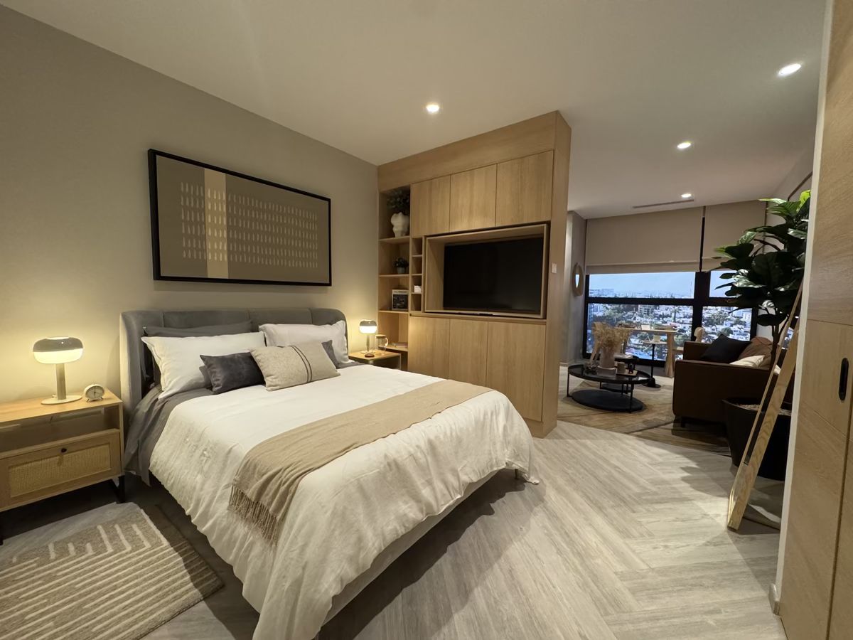 Cuenta con: una recámara con espacio para cama king size, 1 baño completo, cocina, espacio centro de lavado, closet, aire acondicionado, cuenta con bodega, 1 lugar de estacionamiento.