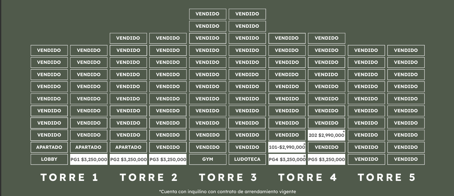 *Nota: En la sección de adjuntados, encontrarás la disponibilidad y precios al día de hoy de estos departamentos, así como también los planos de distribución.