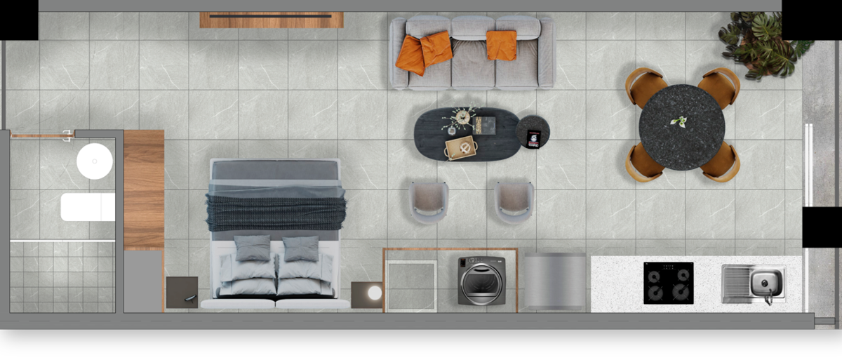 • Incluye Estancia, Comedor, 1 Recámara y 1 Baño, maximizando cada metro cuadrado.
