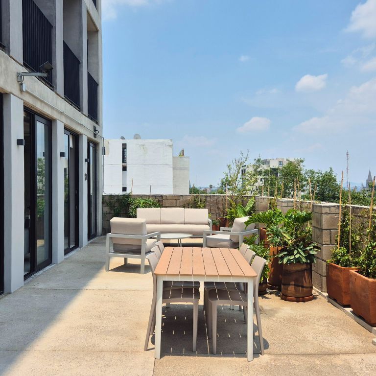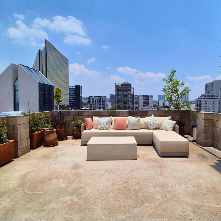• Amenidades: Lounge room, Área coworking, Terraza panorámica de usos múltiples, Coffee station, Pet friendly, Área de asadores, Zona relax.