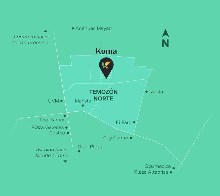 Kuma está localizado no coração da área residencial Temozón Norte, oferecendo aos seus residentes acesso imediato aos mais importantes centros comerciais, hospitais modernos e universidades de alto prestígio da cidade.