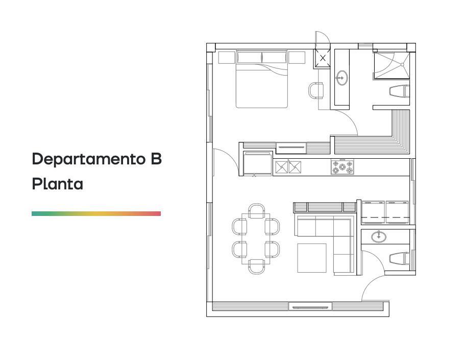 Nivel 2, Departamento 203, Modelo BConstrucción: 65.67 m2