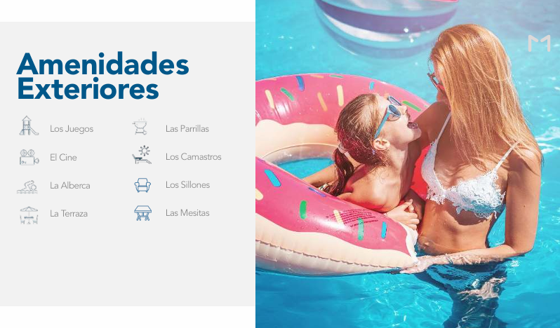🌿 Exteriores: alberca, terraza con parrillas, cine, juegos infantiles y áreas de descanso.