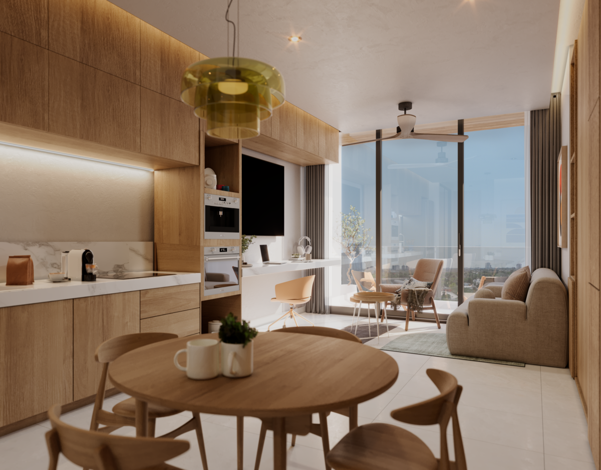 Departamentos tipo suite dentro de un proyecto integral que combina residencias, oficinas y comercios con diseño contemporáneo, amenidades exclusivas y ubicación estratégica en Mérida Norte.