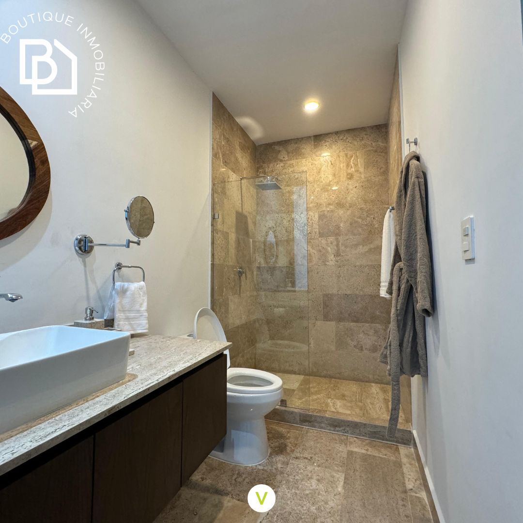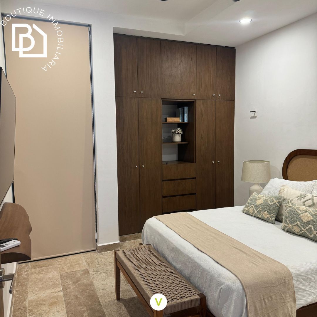 Todas las unidades cuentan con carpintería en inferior de cocina, aire acondicionado, Closets semi-vestidos, pisos de mármol traventino, parrilla eléctrica de 4 fogones, todos los interiores en color blanco.