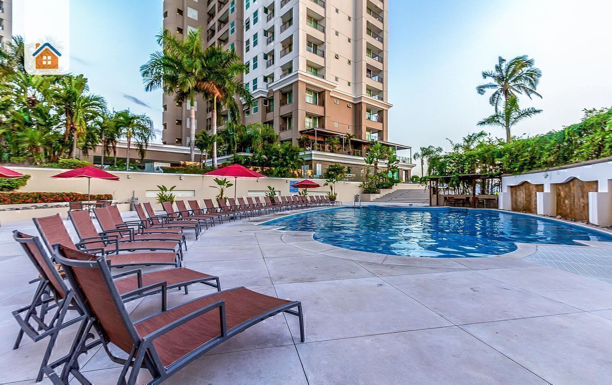 Com 177,32 m² de espaço interno, a unidade possui 2 quartos, 2 banheiros completos, um espaço flexível (ideal como escritório ou terceiro dormitório) e um amplo terraço com vista panorâmica para o mar e a piscina.