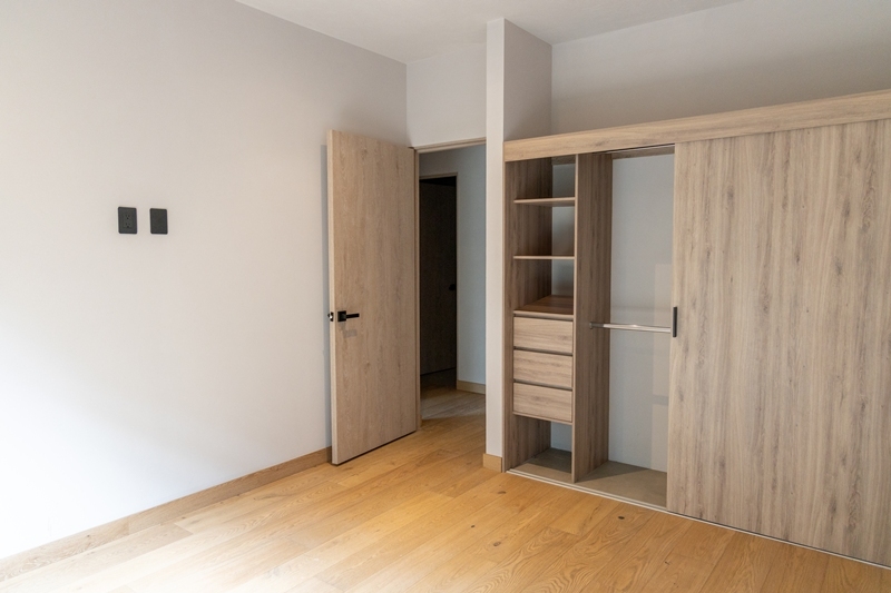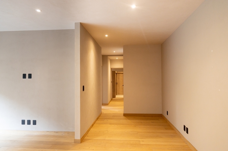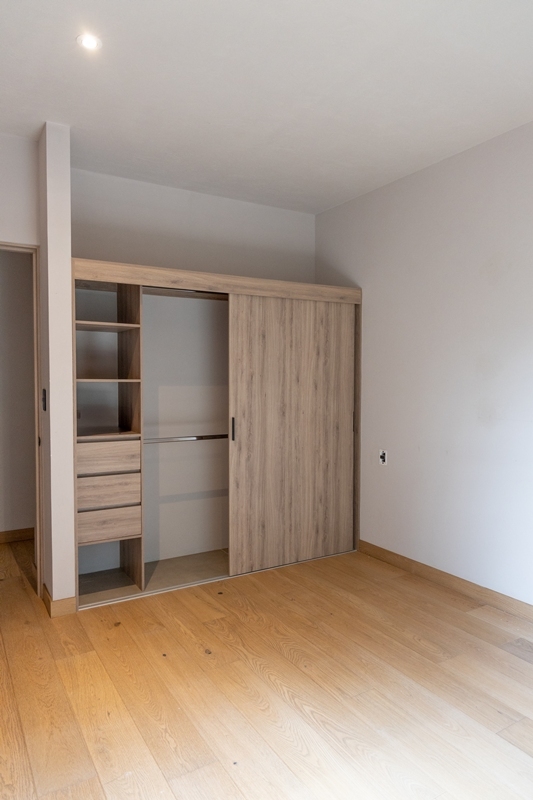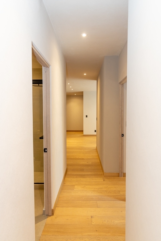 Consta de: sala, comedor, cocina integral, 3 recámaras; la recámara principal con vestidor, las otras dos recámaras con clóset, 2 baños, sala de T.V., balcón, bodega, clóset de lavado. Estacionamiento para 2 autos (eleva-autos).