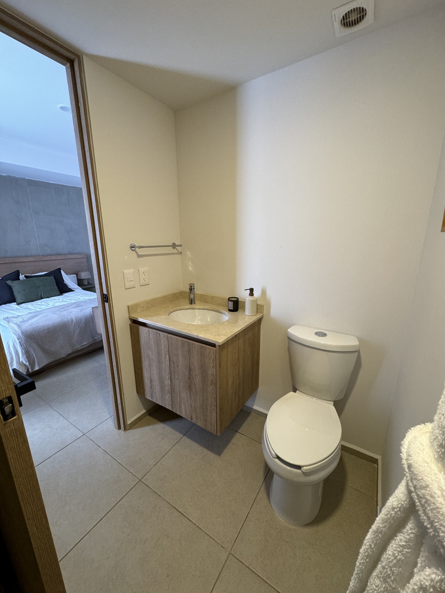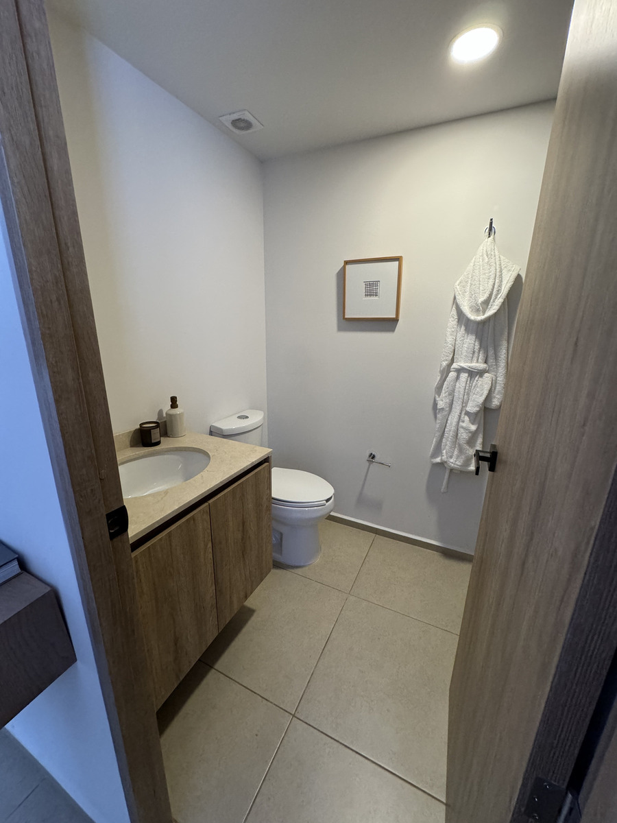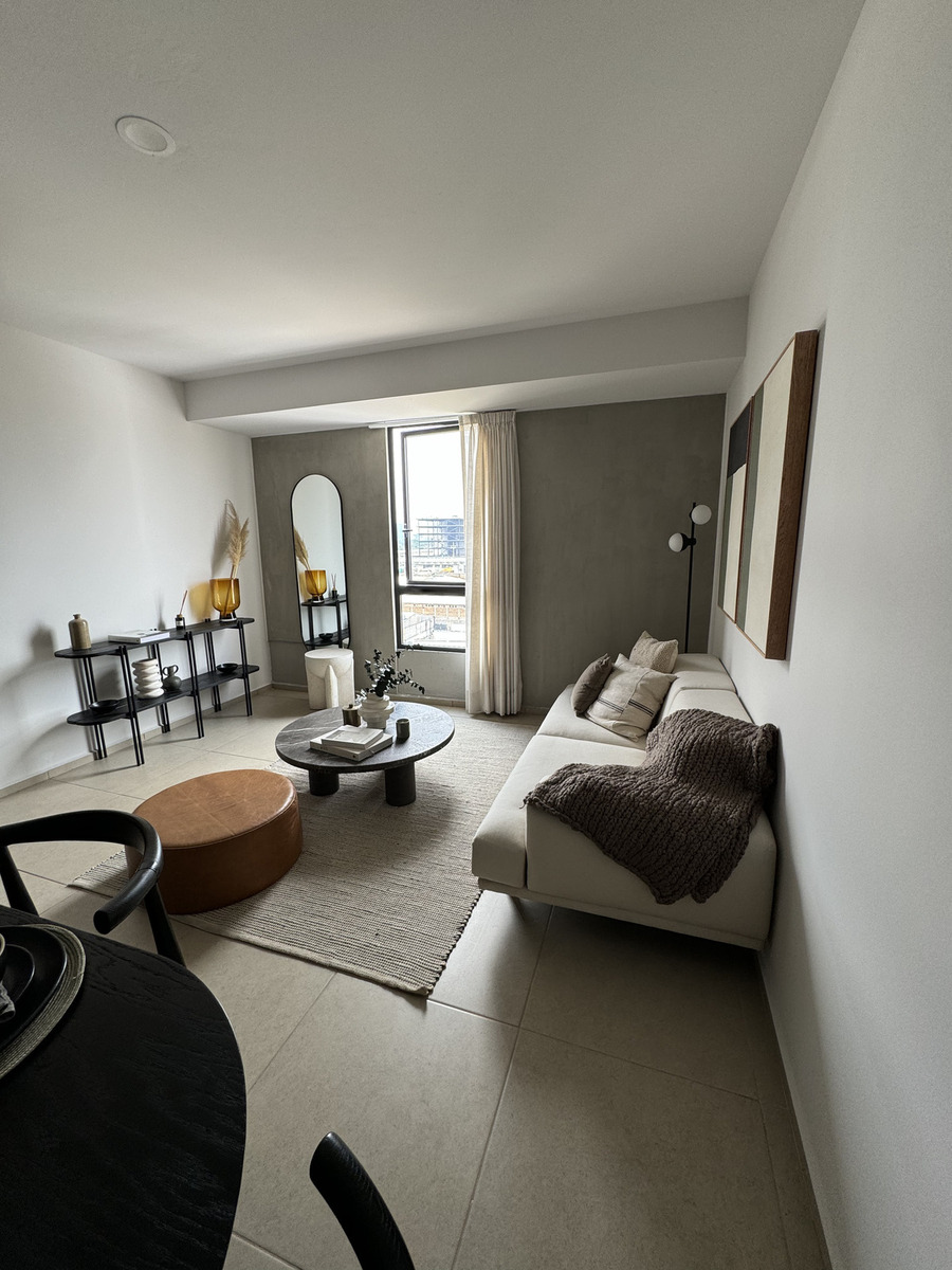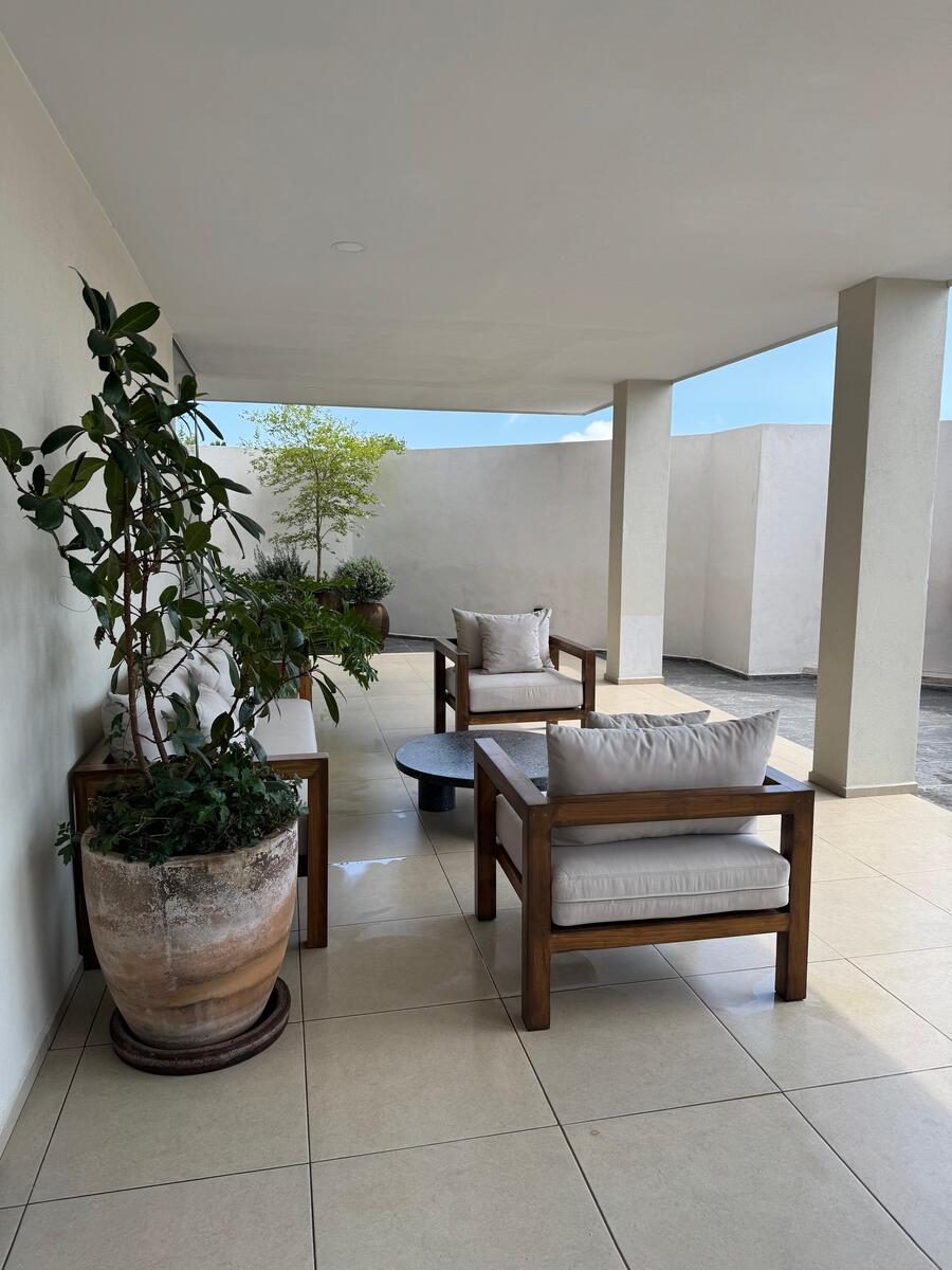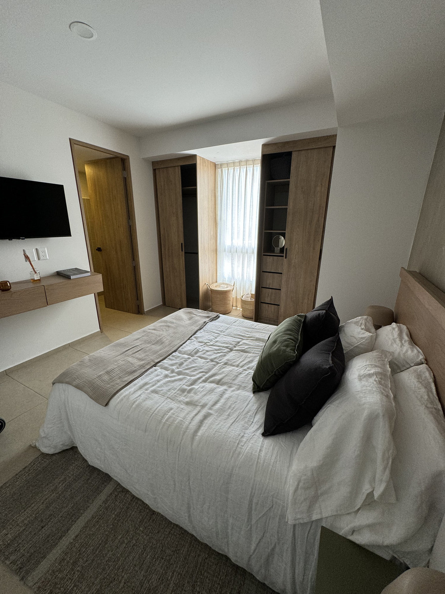 Cuenta con: Cocina con barra desayunadora, sala, comedor, 1 flex, 1 recámara con vestidor y baño completo.