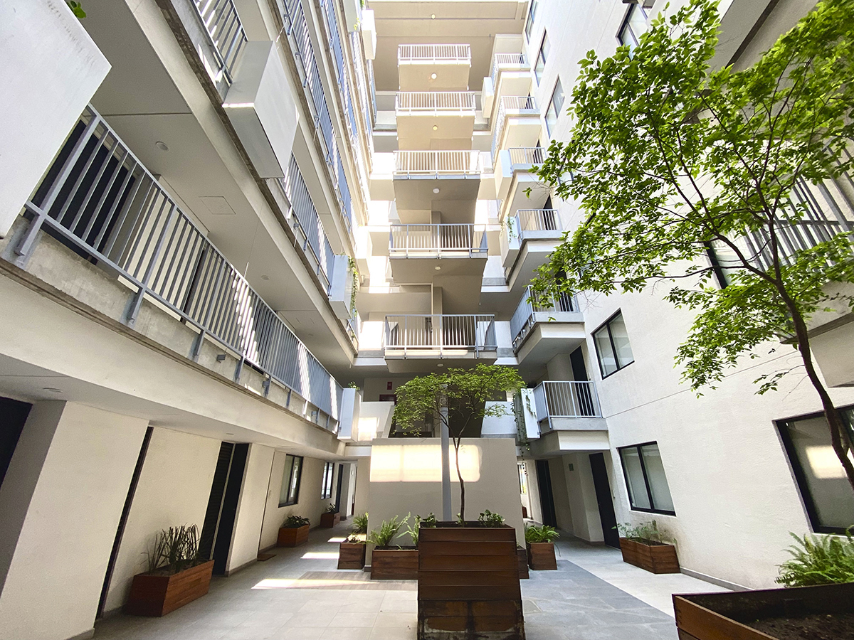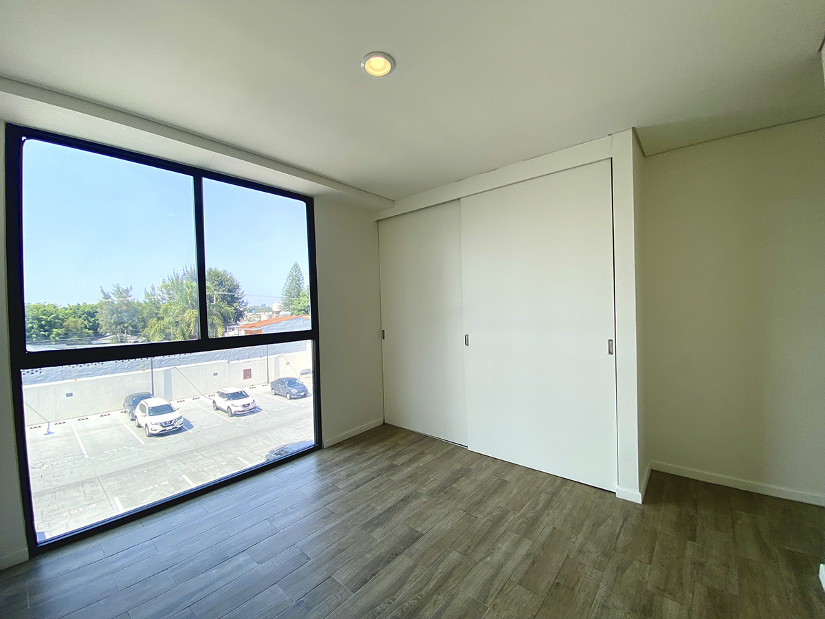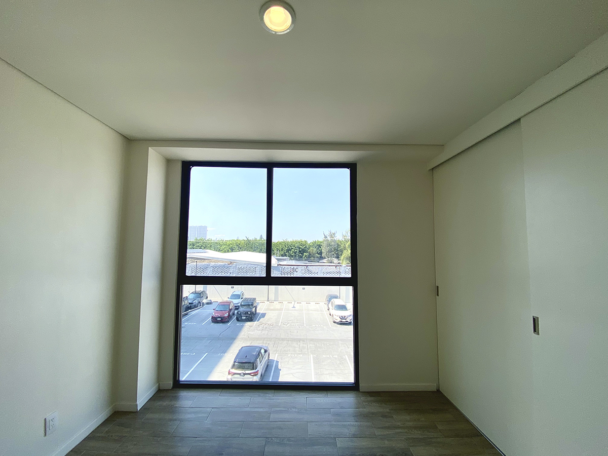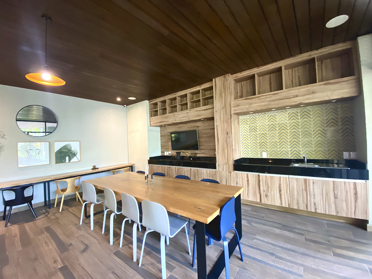 Departamento en condominio “Maestro Life”, primer piso, dos recámaras con clóset, dos baños completos, área de sala comedor, balcón, cocina integral con cubierta de granito y estufa, horno de gas y campana, área de lavado y estacionamiento para dos autos. Alberca, asadores, social room, cuarto de táreas y gimnasio.
