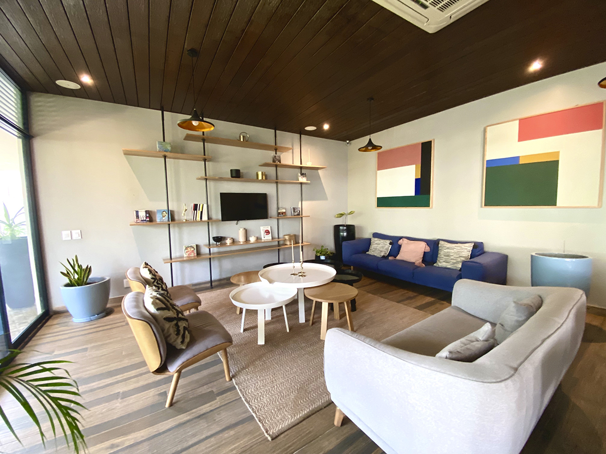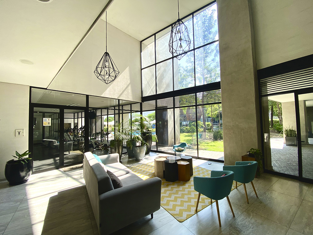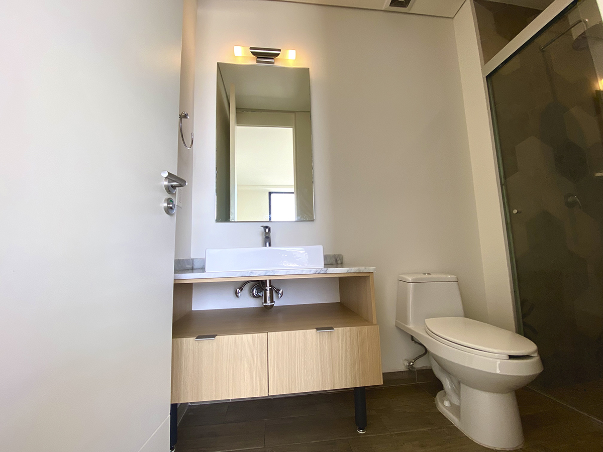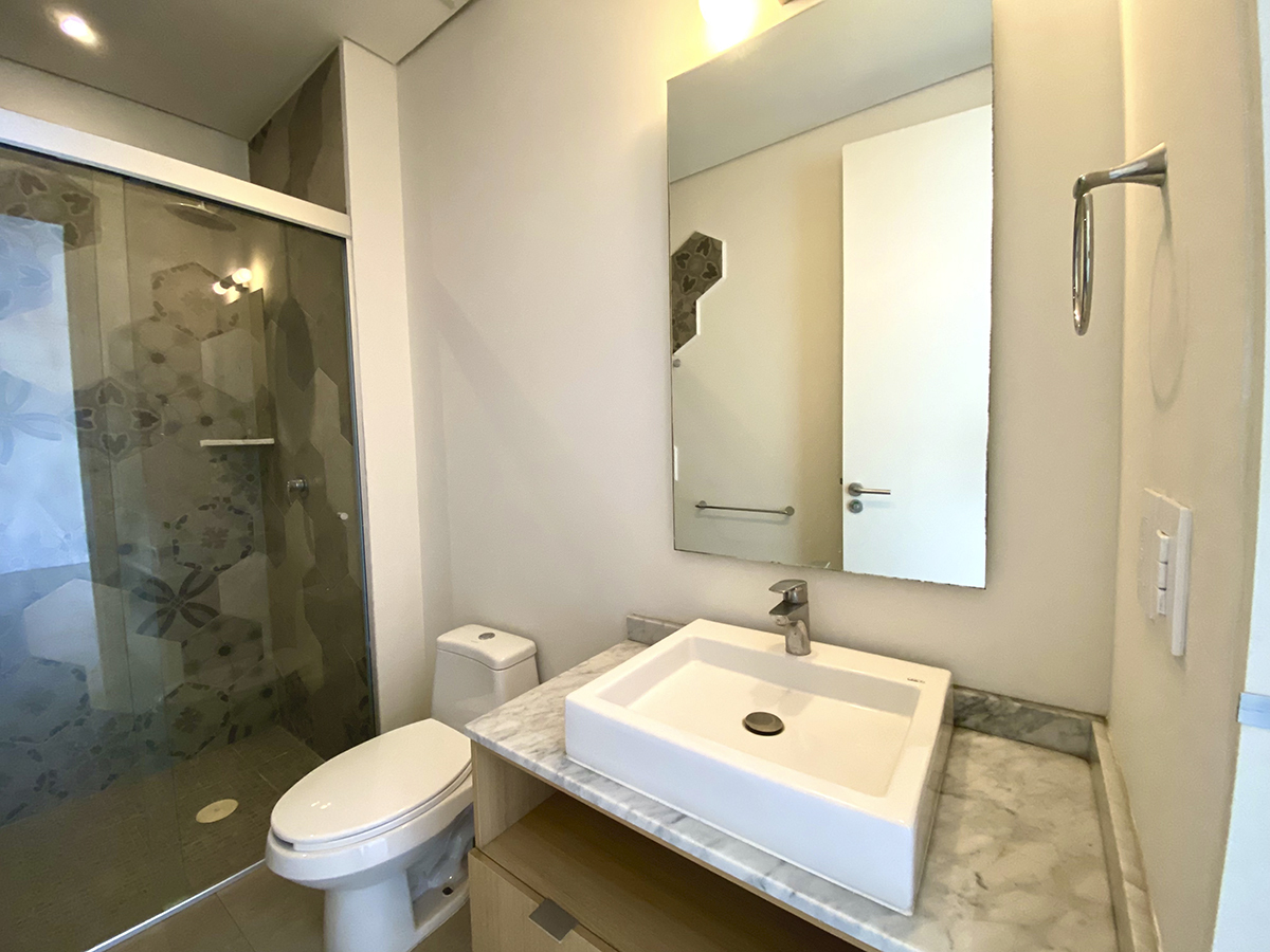 Departamento en condominio “Maestro Life”, primer piso, dos recámaras con clóset, dos baños completos, área de sala comedor, balcón, cocina integral con cubierta de granito y estufa, horno de gas y campana, área de lavado y estacionamiento para dos autos. Alberca, asadores, social room, cuarto de táreas y gimnasio.