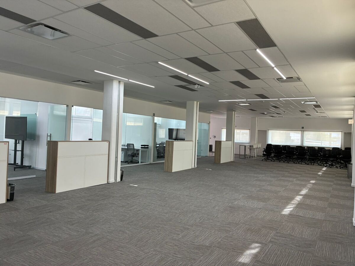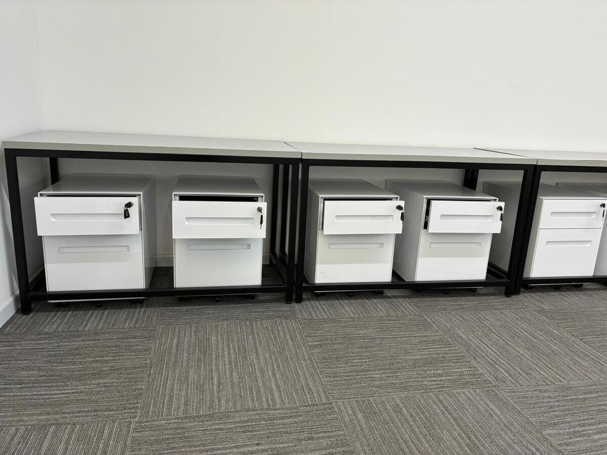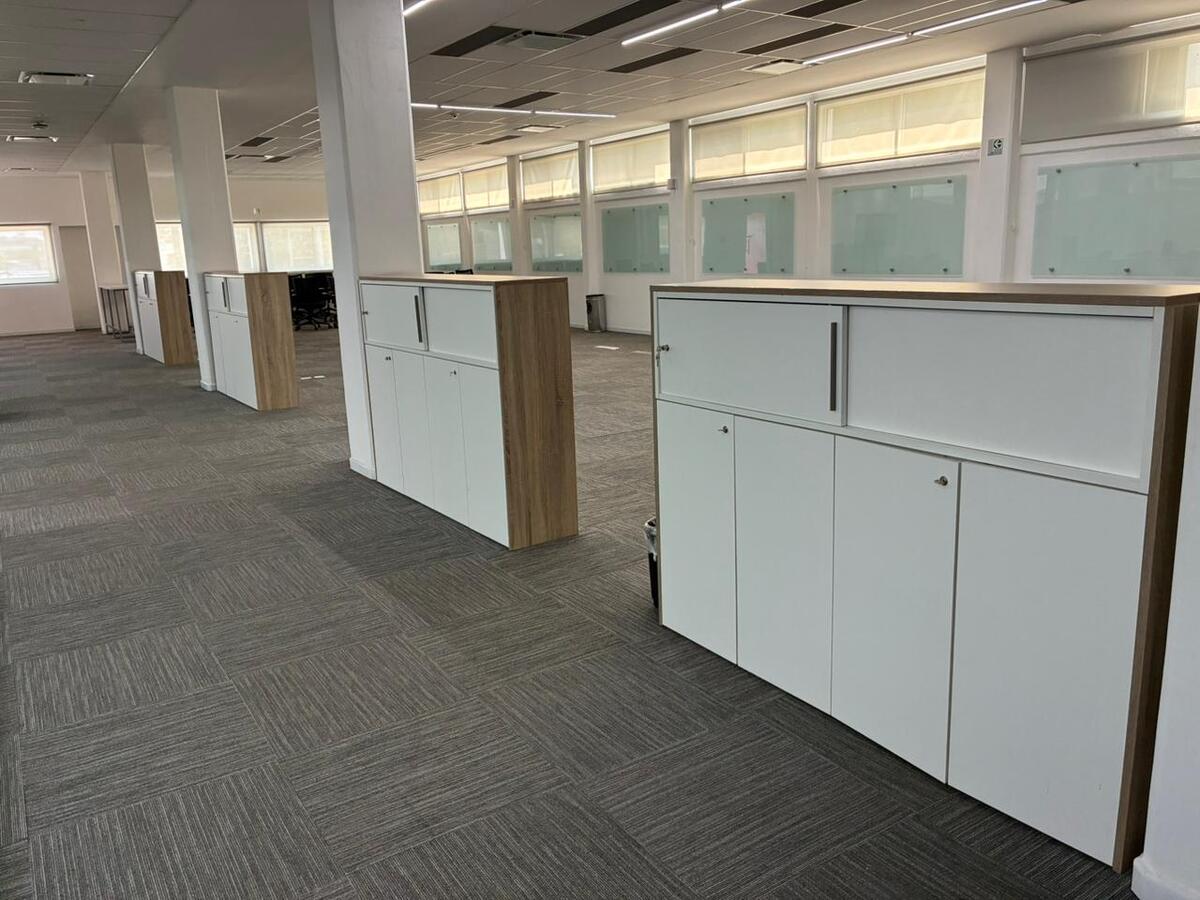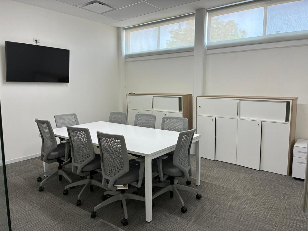 * Salas para administração com mesas, arquivo e quadro