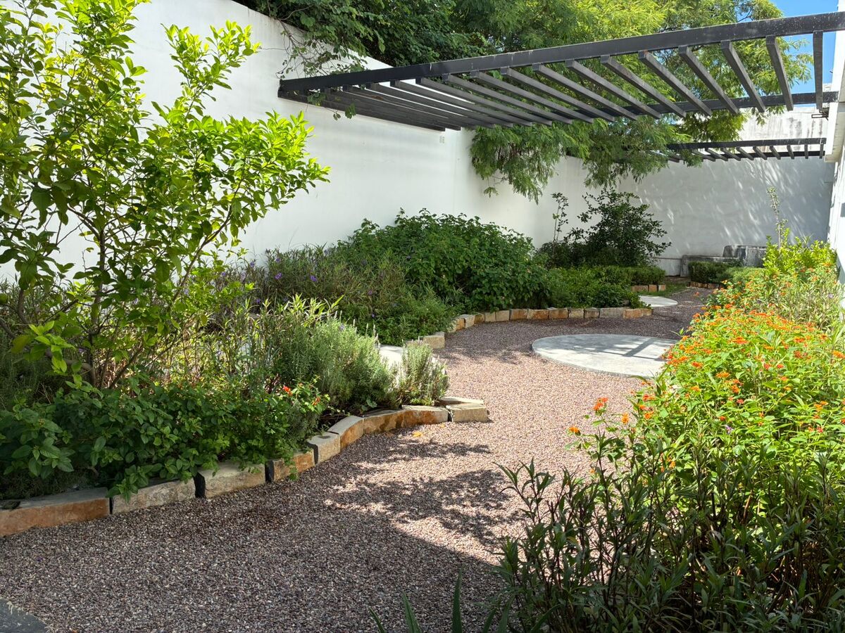 Jardín con espacio para trabajo y salida para charlas