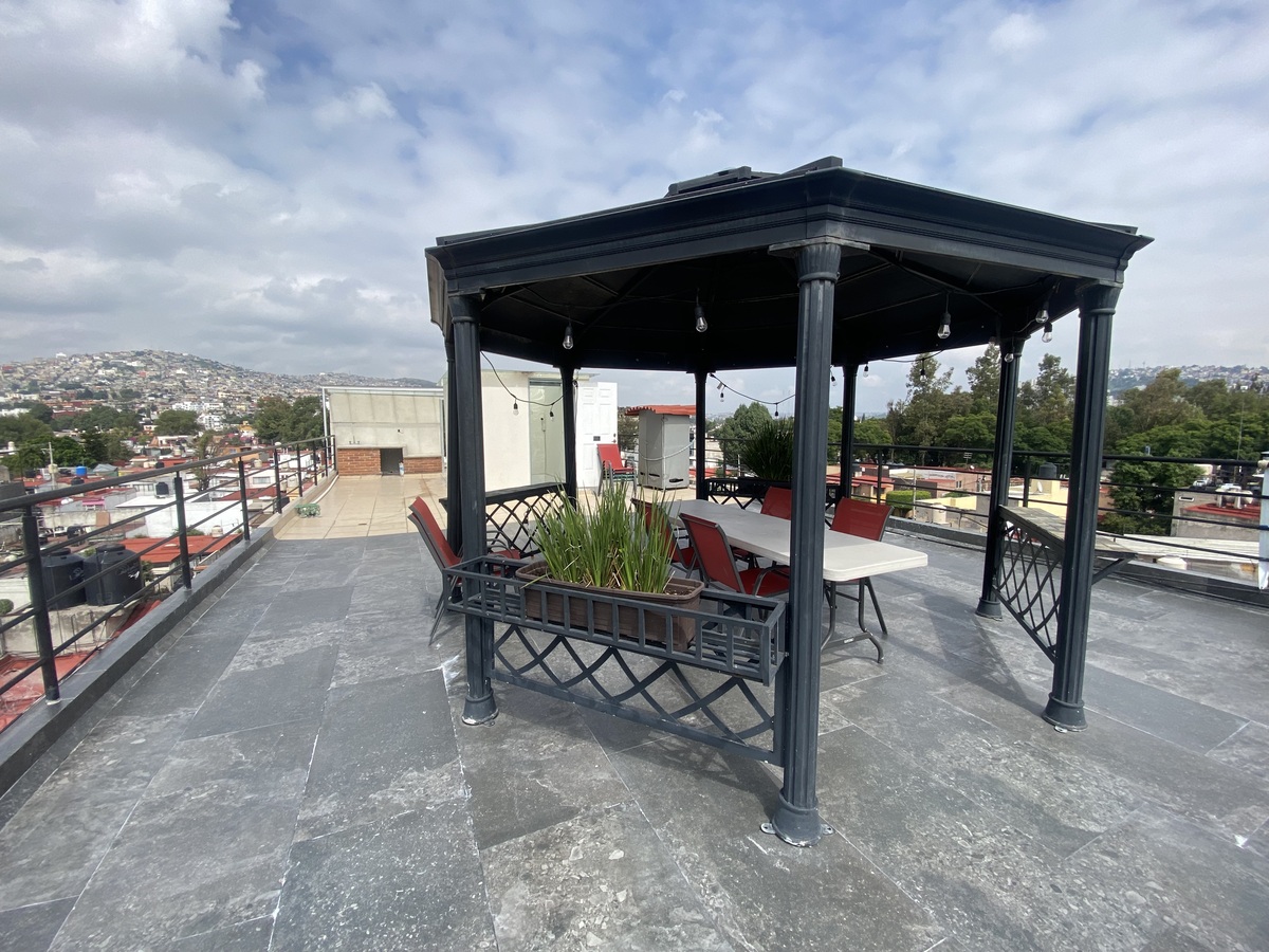 - Roof garden de uso común equipado con kiosco, mesas y sillas para comer, descansar y fumar