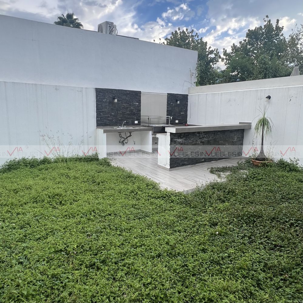 Alugue esta linda casa no Cercado Santiago, N.L., com uma construção de 300 metros quadrados em um terreno de 230 metros quadrados. Com 3 amplos quartos, cada um com varanda, minisplits, ventiladores de teto, banheiro completo e closet, esta propriedade conta com uma cozinha equipada com churrasqueira, coifa, micro-ondas, forno e refrigerador, lavanderia com centro de lavagem, aquecedor e câmeras de segurança, cortinas e lustres na sala de estar e jantar, persianas blackout nos quartos e na sala de família. Amplo pátio com bar de concreto, pia e churrasqueira, 2 vagas de estacionamento. Animais de estimação são aceitos. Aproveite esta casa com todas as comodidades e belas vistas em frente ao parque. Id Gvia: 118808Renta esta hermosa casa en el Cercado Santiago, N.L., con una construcción de 300 metros cuadrados en un terreno de 230 metros cuadrados. Con 3 amplias recámaras, cada una con balcón, minisplits, abanicos de techo, baño completo y walking closet, esta propiedad cuenta cocineta equipada con parrilla, campana, micro ondas, horno y refrigerador, lavandería con centro de lavado, boiler y cámaras de seguridad, cortinas y candiles en sala comedor, persianas black out en recámaras y family room. Amplio patio con barra de concreto, tarja y asador, 2 cajones de estacionamiento. Se aceptan mascotas. Disfruta de esta casa con todas las comodidades y hermosas vistas frente a parque. Id Gvia: 118808