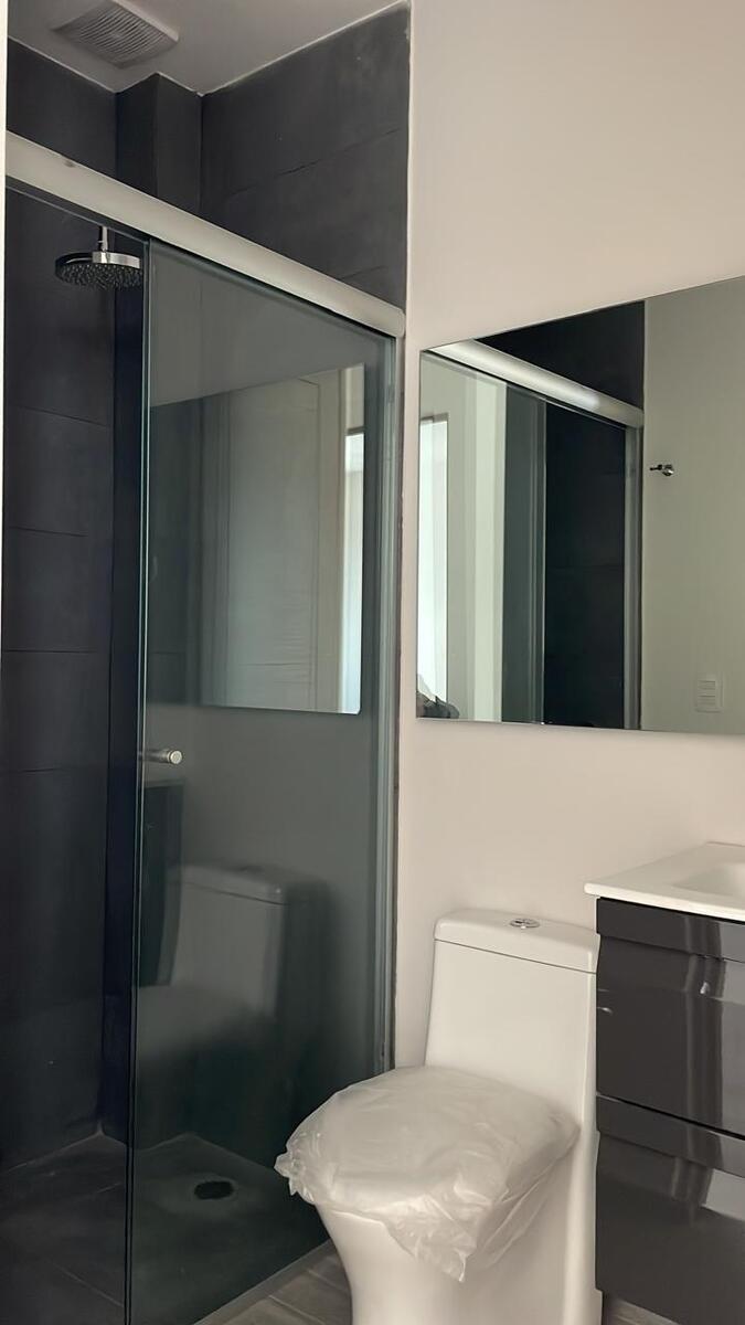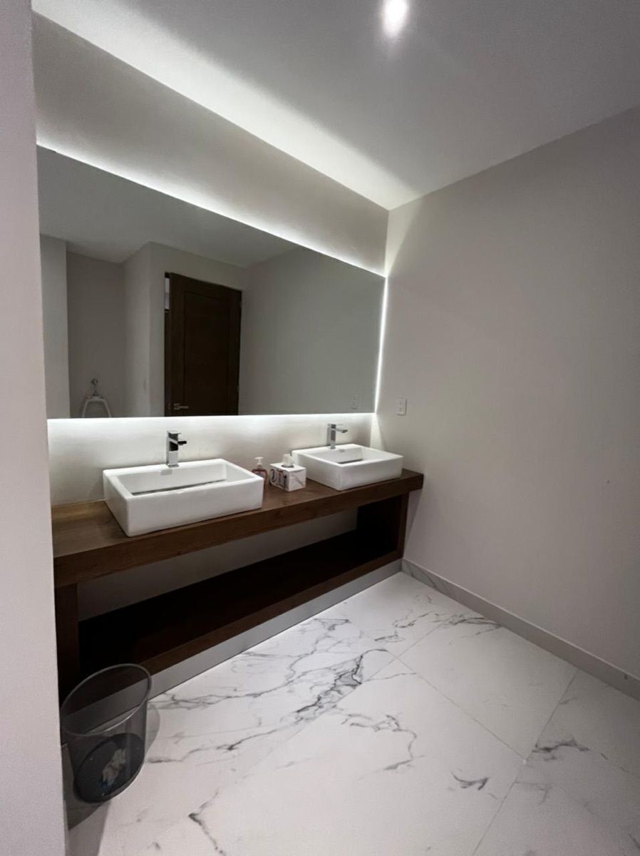 LOS BAÑOS TIENEN CANCEL DE ALUMINIO CON VIDRIO TEMPLADO, AL REDEDOR DE LOS ESPEJOS HAY LUZ INDIRECTA. TAMBIEN TIENE UNA PEQUEÑA TERRAZA O BALCÓN EN DONDE PODRÁS PONER TU ASADOR. TODO EL PISO DEL DEPARTAMENTO ES DE PORCELANATO.